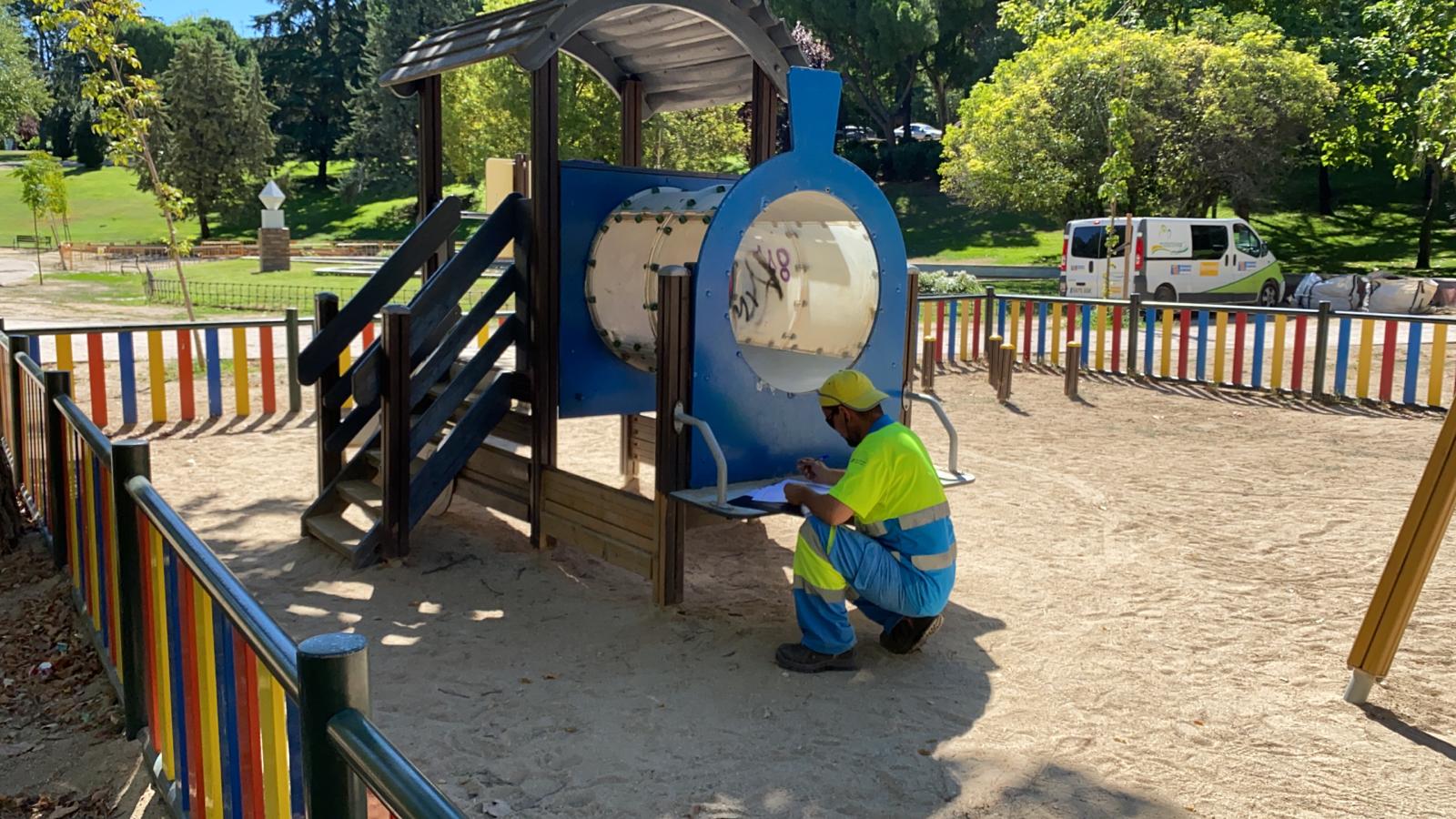 Imagen en alta resolución. Este enlace se abrirá mediante lightbox, puede haber un cambio de contextoEl Gobierno de Móstoles, a través de la Concejalía de Mejora y Mantenimiento de los Espacios Públicos, acomete las obras de construcción de nuevos parques infantiles y zonas biosaludables en el municipio. A día de hoy, se están realizando actuaciones en el barrio de Pinares Llanos y en el Parque Andalucía. Ambas actuaciones están incluidas en los presupuestos participativos de las Juntas de Distrito 2 y 4.