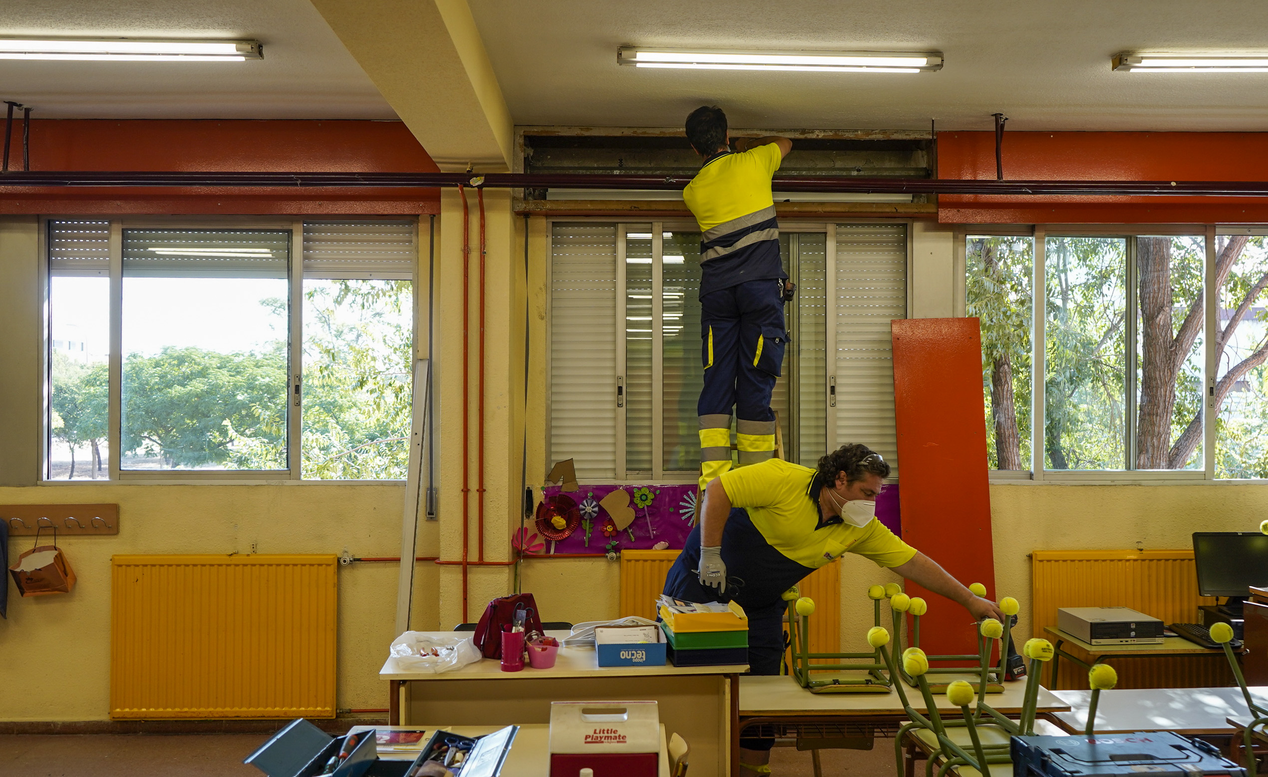 En el CEIP Margarita Xirgu se están renovando las persianas y se están acometiendo trabajos de electricidad y en el CEIP León Felipe se está llevando a cabo el pintado de las aulas y diferentes trabajos de albañilería.