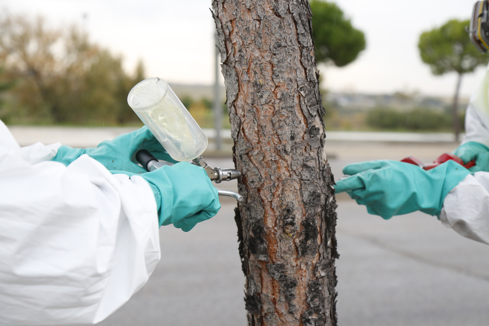 Este tratamiento de carácter preventivo se realiza mediante endoterapia, un tratamiento más ecológico y menos dañino para el medioambiente. Consiste en la inyección de productos insecticidas directamente a los pinos y cedros, de manera que afecta solo a los insectos que parasitan en estos árboles y no al resto de la fauna, ni a la población ni a las mascotas. Solo en grandes masas uniformes de arbolado el tratamiento con endoterapia se está combinando con fumigaciones localizadas mediante pulverización.