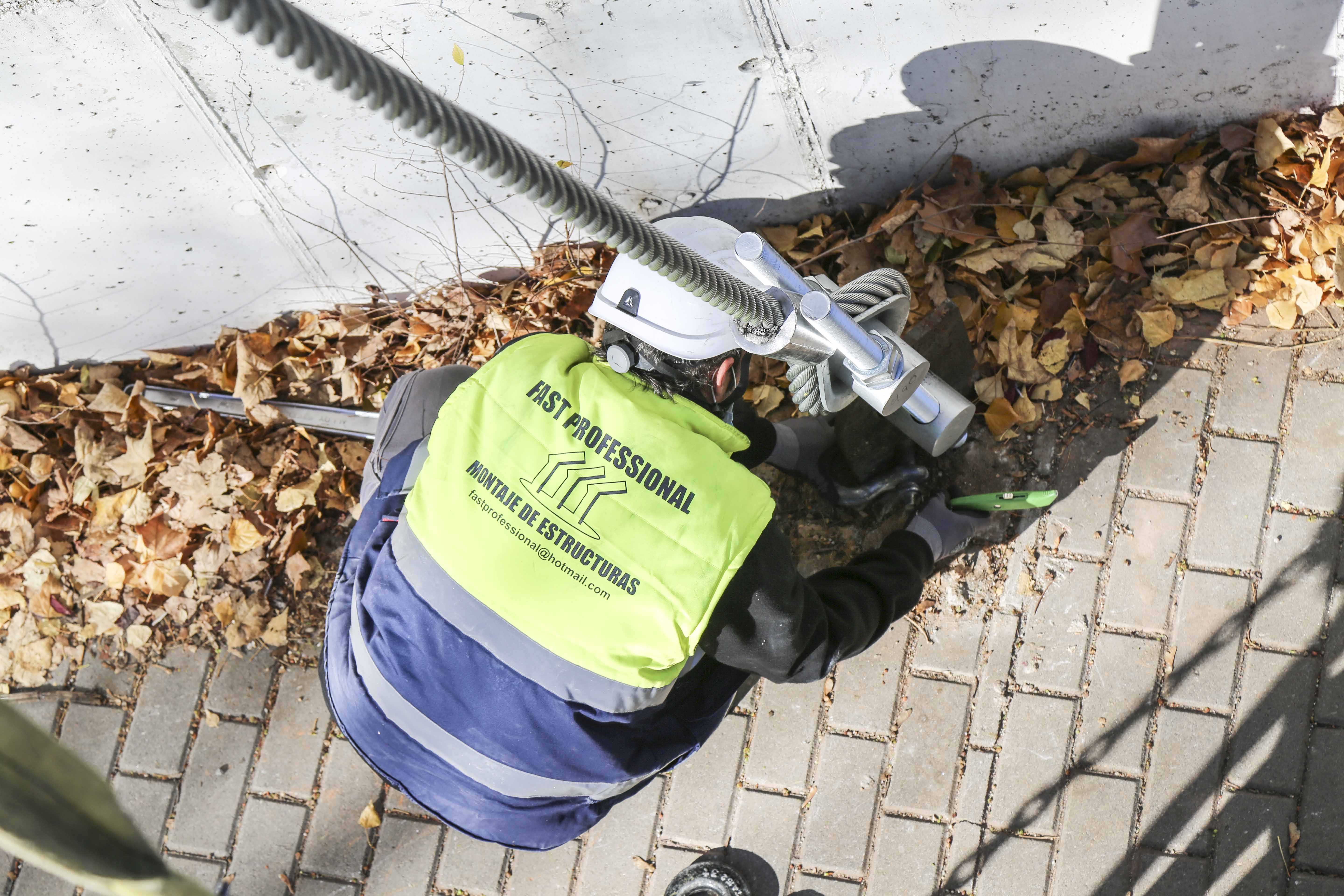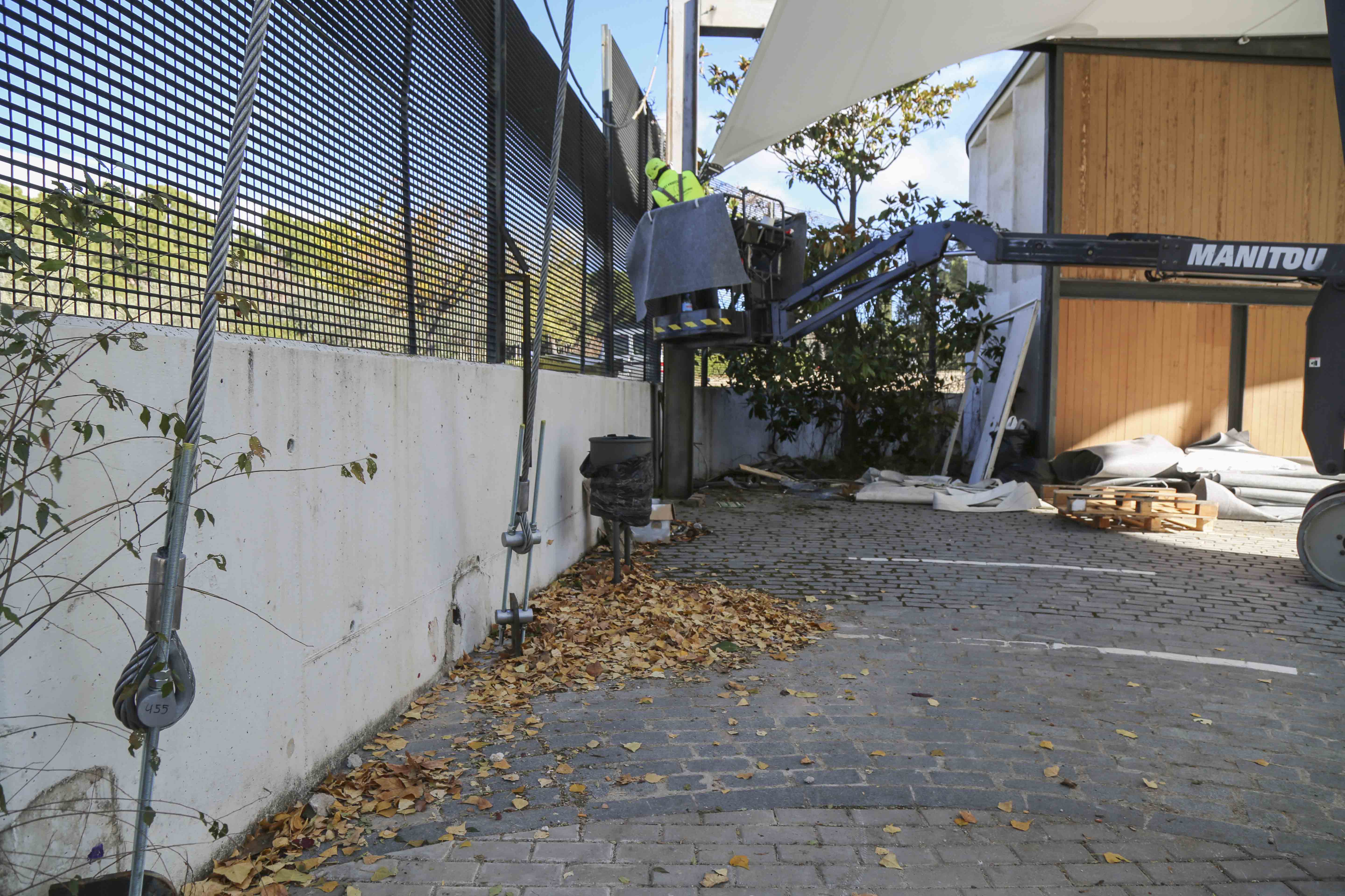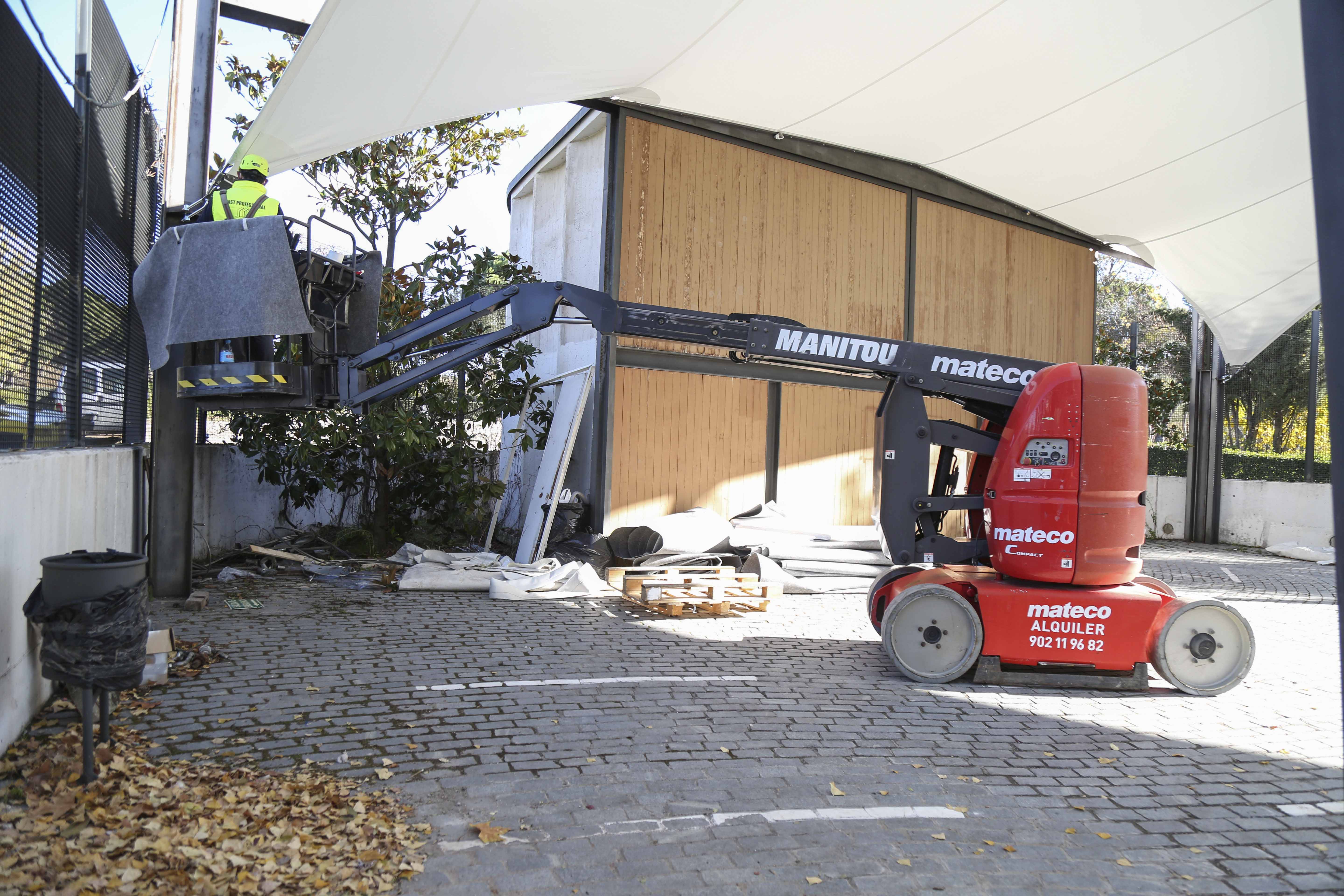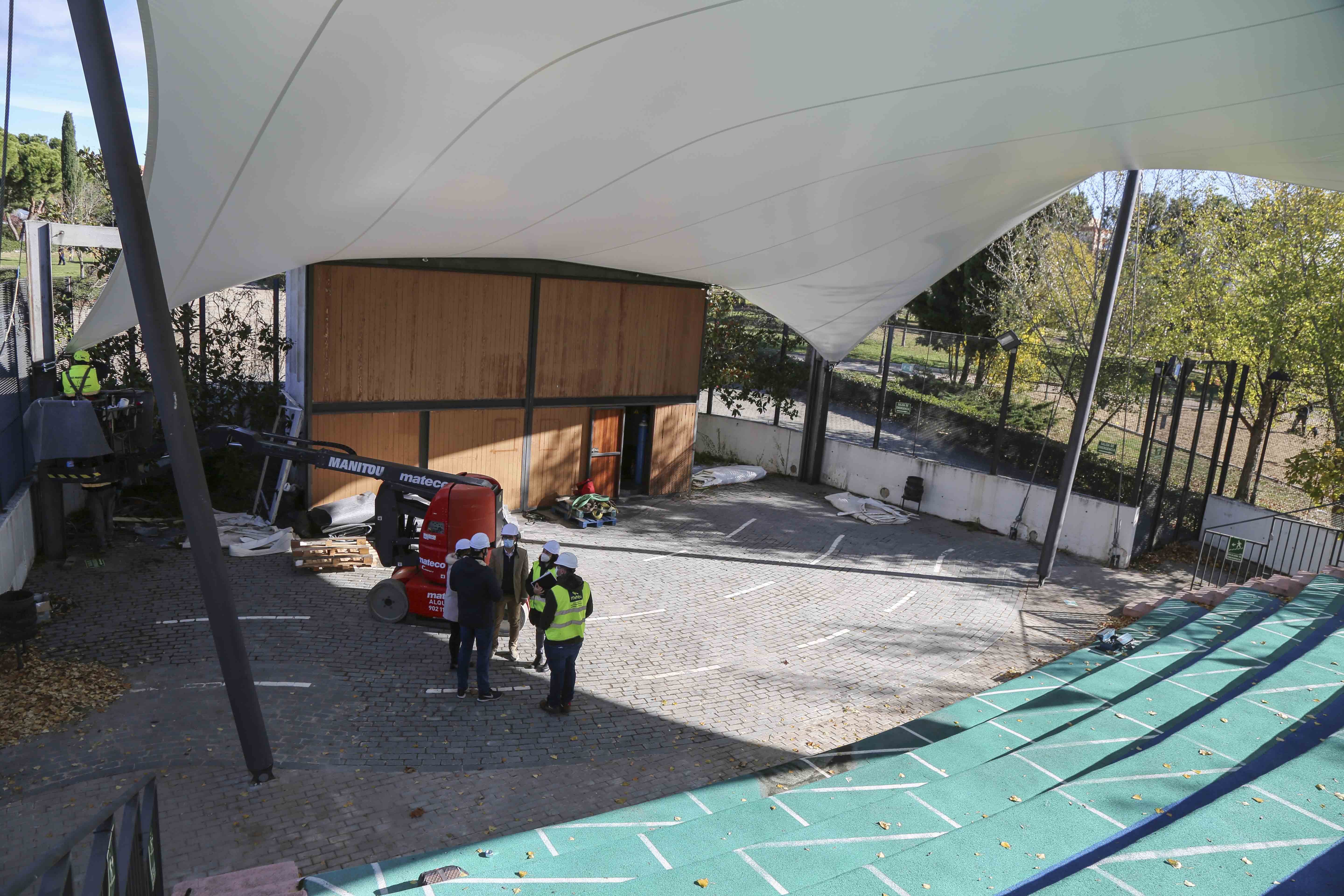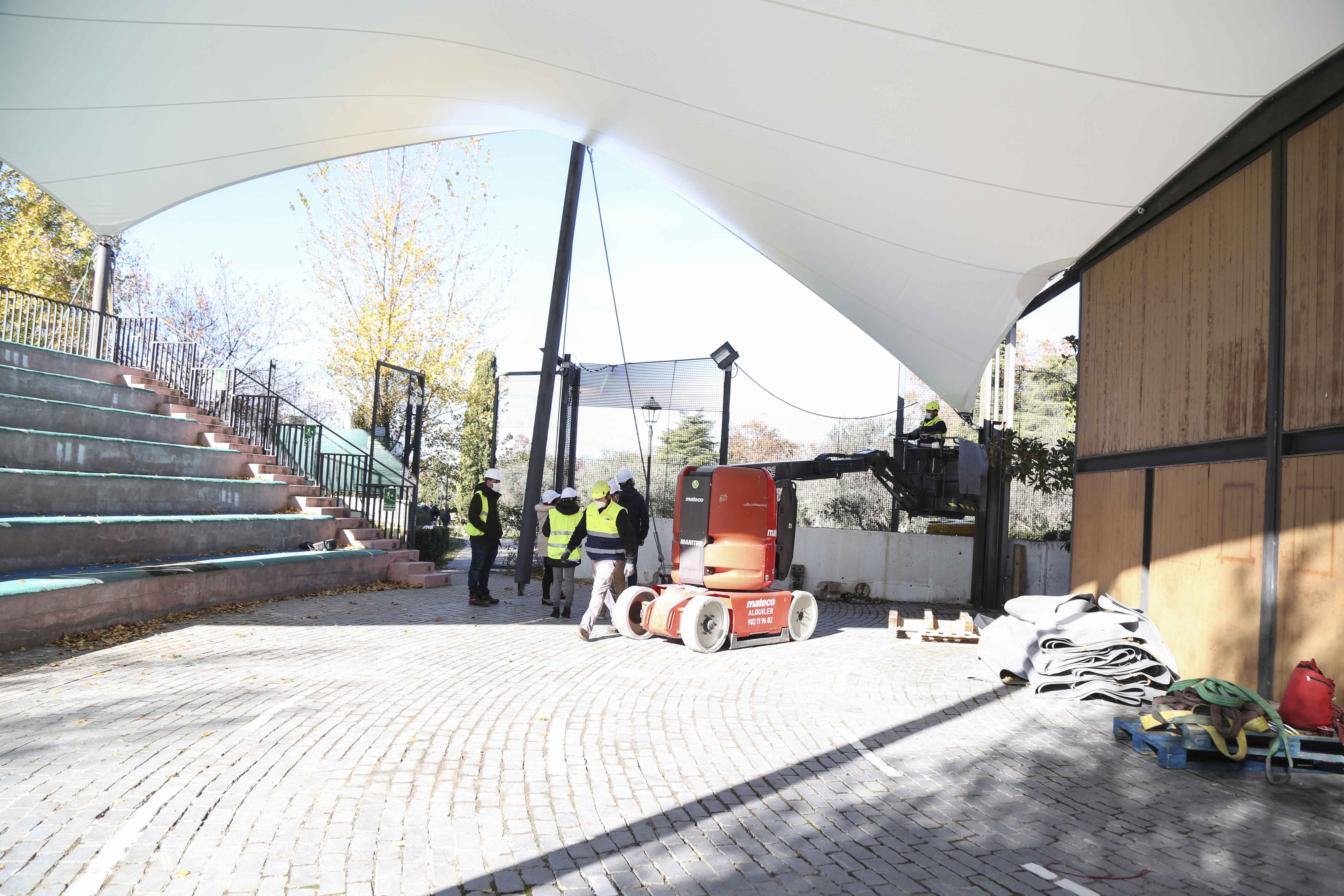 Los trabajos, entre otras cuestiones, están consistiendo en la reposición de la membrana tensada y la reparación de la estructura de la cubierta textil del teatro, dañadas por el peso de la gran acumulación de nieve.