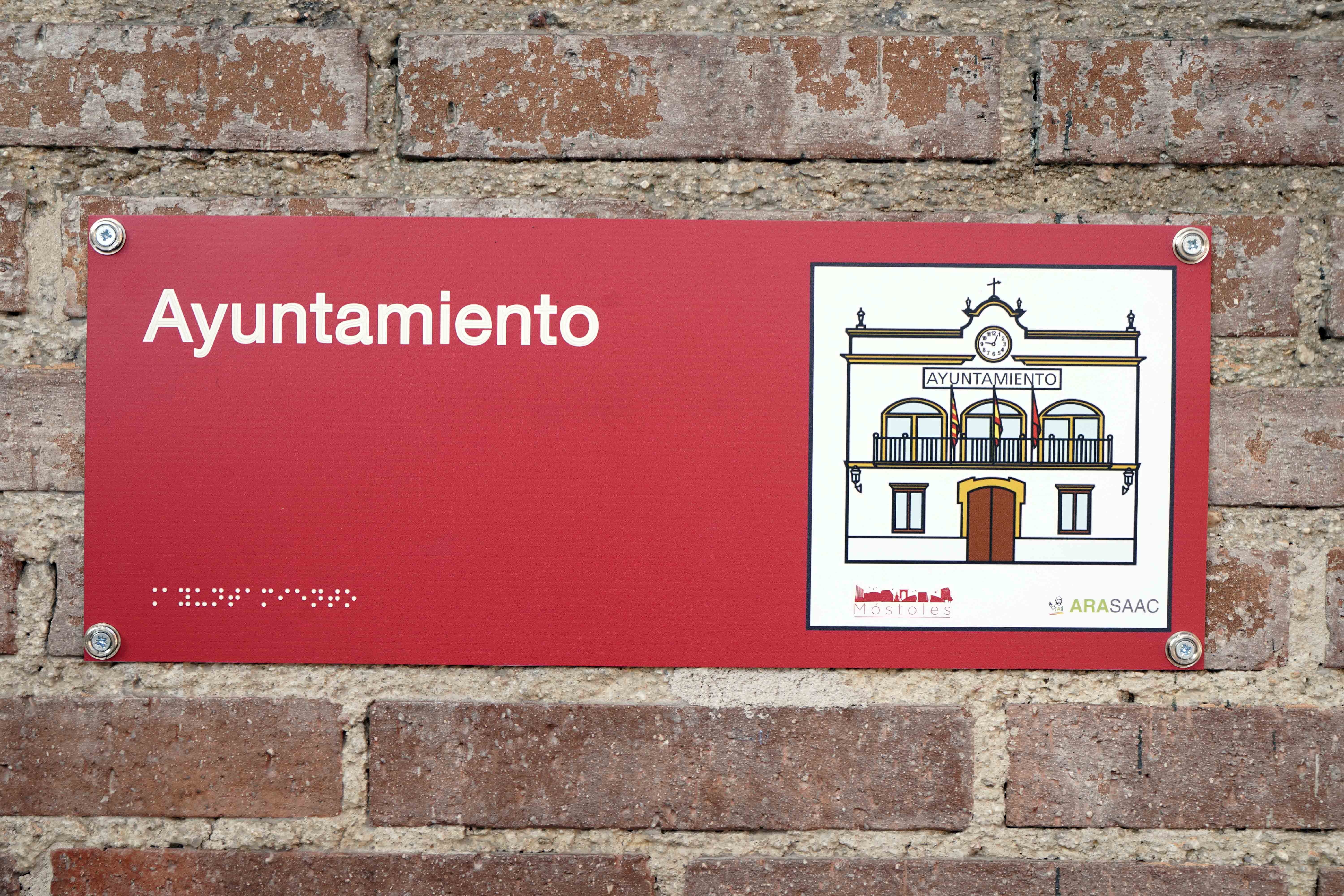 • En su compromiso de trabajar por una ciudad más accesible, el Ayuntamiento de Móstoles instalará inicialmente 70 placas externas con el nombre del edificio, con textos en alto relieve y braille y pictogramas de fácil comprensión.