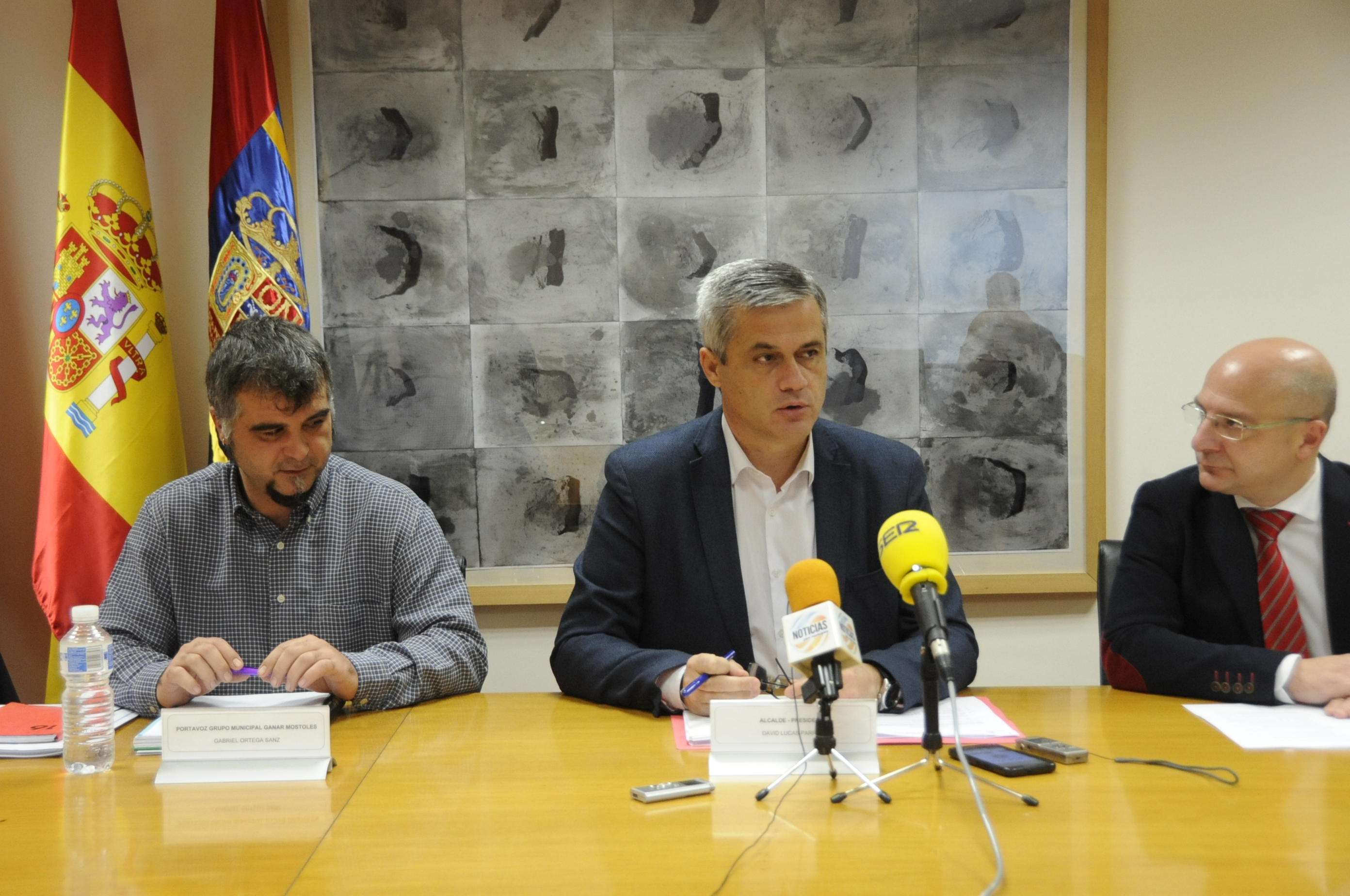 Imagen en alta resolución. Este enlace se abrirá mediante lightbox, puede haber un cambio de contextoEl Gobierno municipal ha presentado esta mañana el proyecto de Presupuestos para 2017, tras su aprobación inicial en la Junta de Gobierno Local. En la presentación de los mismos estuvieron presentes el Alcalde de Móstoles, David Lucas, el concejal de Hacienda y Patrimonio, Javier Gómez, así como los portavoces de los grupos municipales que conforman en Gobierno Municipal, Roberto Sánchez, del PSOE, Gabriel Ortega de Ganar Móstoles y Eduardo Gutiérrez, de Izquierda Unidad CM-LV.