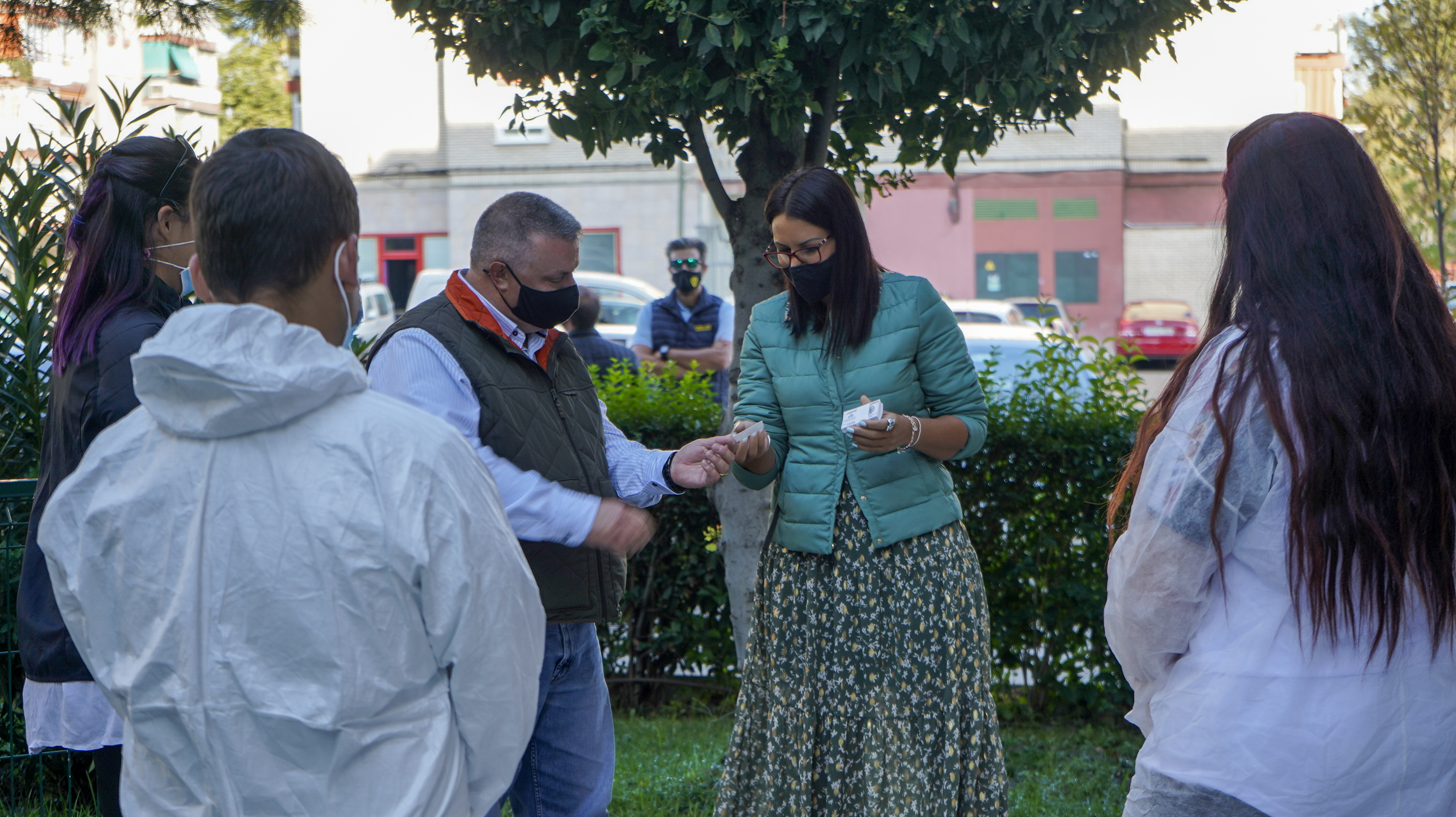 La Concejala de Presidencia, Rebeca Prieto, ha procedido a la entrega de los sellos que certifican que los taxis de Radio Taxi Móstoles han sido desinfectados con ozono y que cumplen todos los requisitos para garantizar la seguridad de los usuarios frente a la COVID-19.