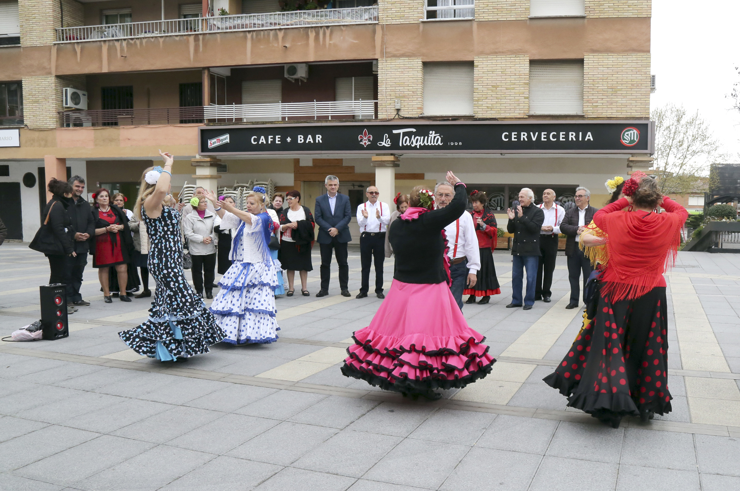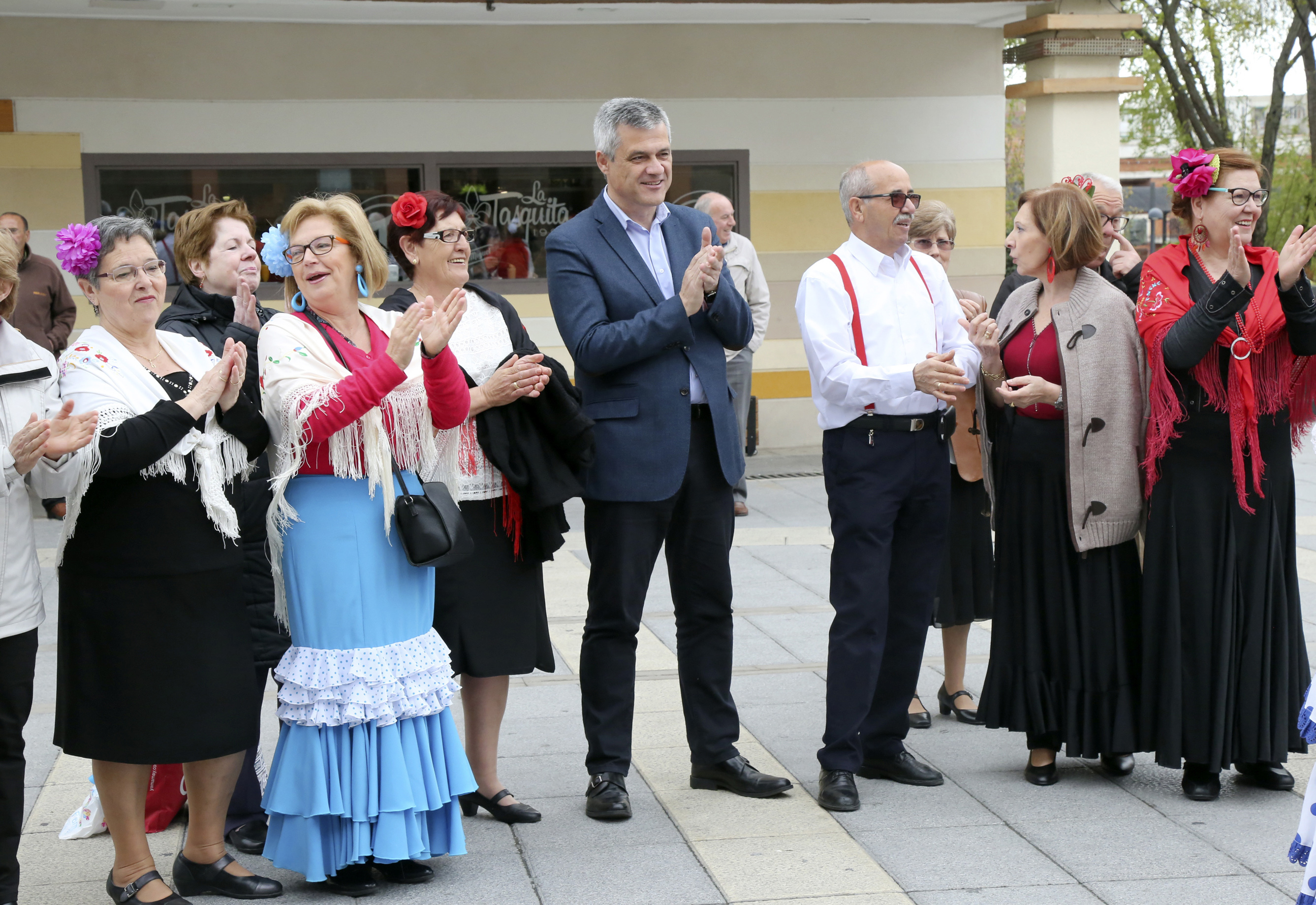 Dentro de las actividades programadas durante este mes por los Centros de Mayores, un grupo de socios y socias del Centro Juan XXIII han celebrado esta mañana la Feria de Abril con varios bailes de sevillanas en la Plaza del Pradillo, Plaza de España y Plaza de la Cultura. Durante su actuación en la plaza del Ayuntamiento han sido acompañados por el alcalde de Móstoles, David Lucas, por la concejala de Bienestar Social, Sanidad e Igualdad, Ana María Rodrigo, y los concejales de Ganar Móstoles, Beatriz Mogrovejo y Gabriel Ortega.