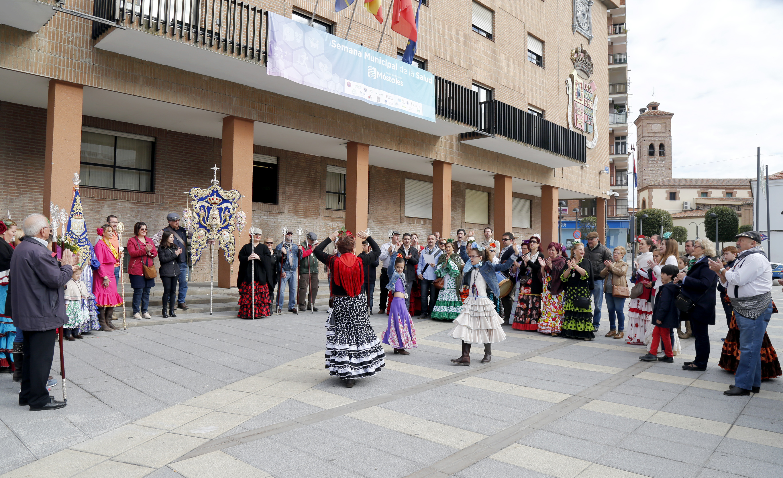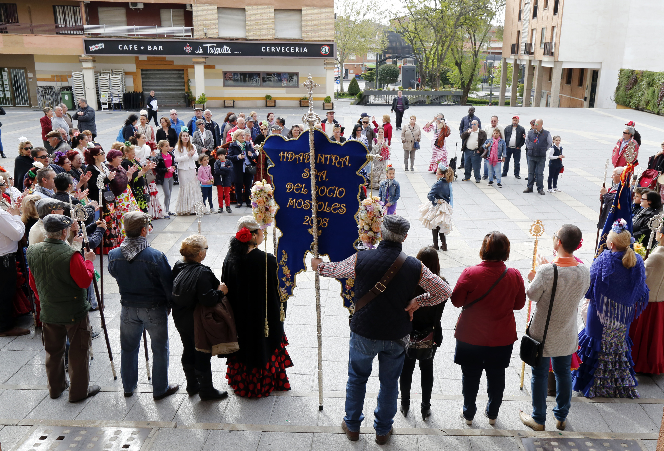 Las ediles saludaron a los miembros de la Hermandad y asistieron a una exhibición de un repertorio de sevillanas, a cargo del Coro de la hermandad. A continuación los rocieros de Móstoles iniciaron su tradicional romería que concluyó en el Parque Natural El Soto, deteniéndose previamente en Finca Liana y en la iglesia de El Soto.