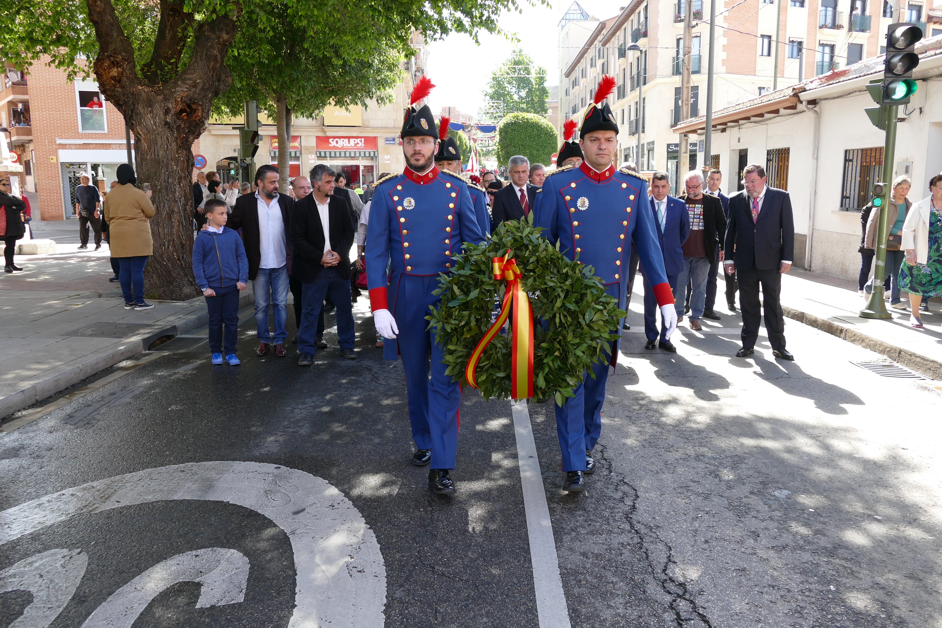 A continuación, tras el acto en la Parroquia de Nuestra Señora de la Asunción, la Corporación Municipal, acompañada por grupos de recreación histórica y de la Banda Municipal Juvenil, han recorrido las calles del centro hasta llegar a la casa donde vivió y murió Andrés Torrejón, lugar en el que el primer ediñ ha impuesto en la fachada de la vivienda una segunda corona de laurel, en homenaje al histórico alcalde mostoleño.