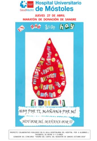 Imagen en alta resolución. Este enlace se abrirá mediante lightbox, puede haber un cambio de contextoPara fomentar la donación de sangre en nuestra ciudad el Hospital Universitario de Móstoles organiza el III Maratón de Donación de Sangre el jueves 27 de abril, entre las 10.00 y 20.00 horas.