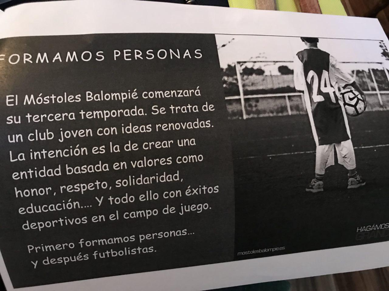 El Club Móstoles Balompié contó el curso pasado con 15 equipos en diversas categorías y 278 jugadores, cifra que pretenden superar en este curso. El club destaca por su apuesta por la formación en valores.