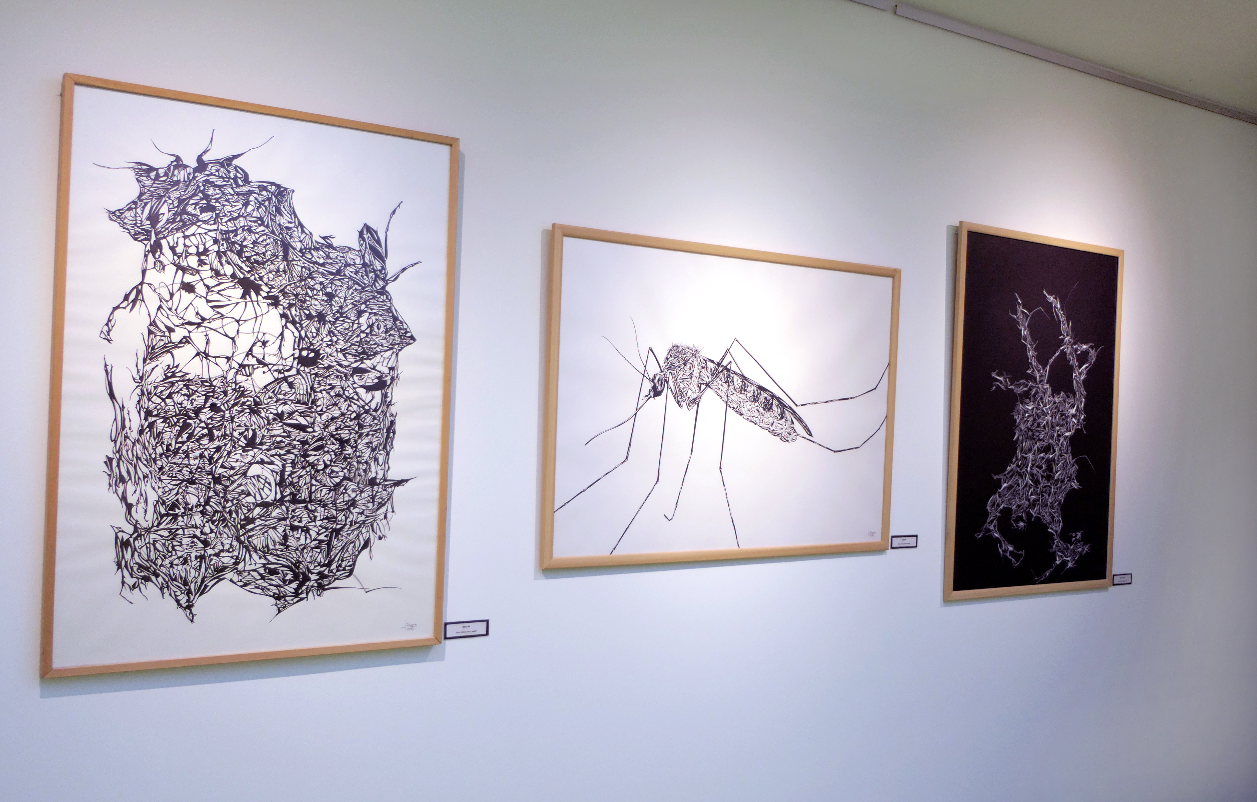 La exposición "IN-orgánica" ofrece al espectador cerca de una treintena de obras en las que el denominador común es la utilización de la tinta china sobre el papel.