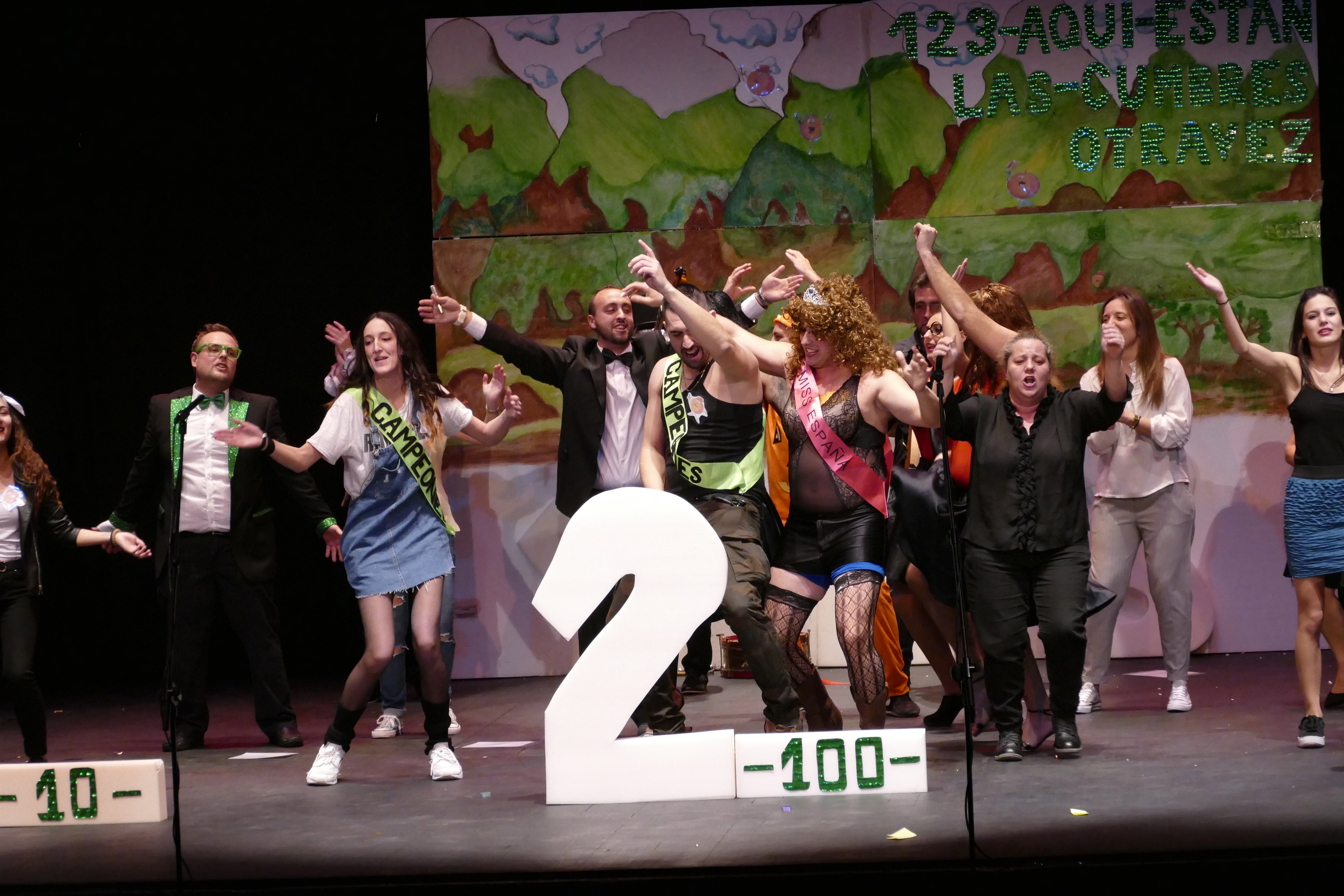 - Los galardonados han sido en primera posición la peña El Soniquete, con la chirigota "Lo que nos pone a parir", en segundo lugar la peña Los Corbatos con la chirigota "Zulús!!! Chiquillos!! , y en tercer puesto la peña Los Mixtos con la chirigota "Quien da la Vez".