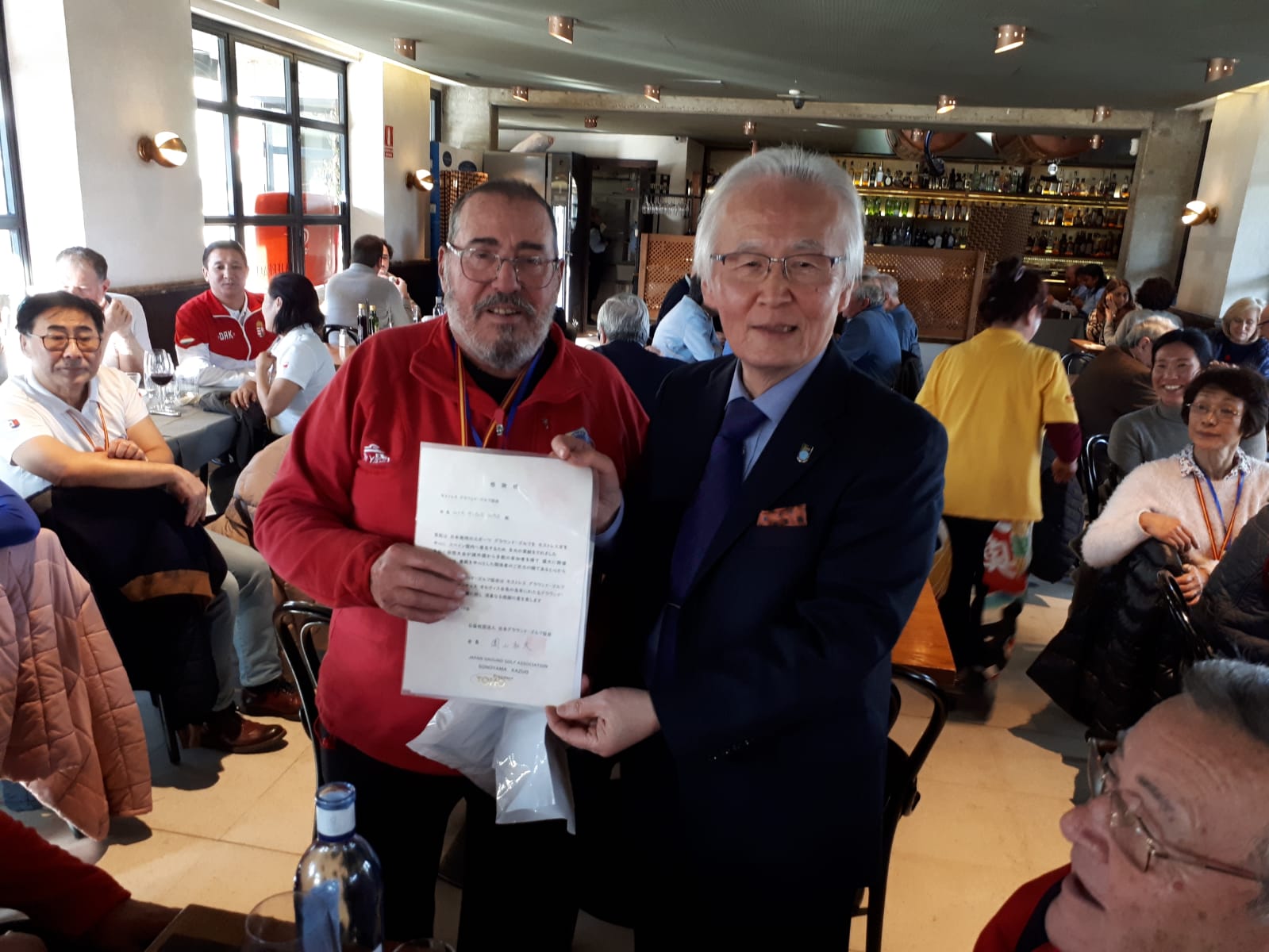 El Presidente de la Asociación de Ground Golf Japón, Kazuo Sonoyama, hizo entrega de un certificado de agradecimiento por la divulgación de este deporte al Presidente de Ground Golf Móstoles, Luis Sánchez Ortiz.