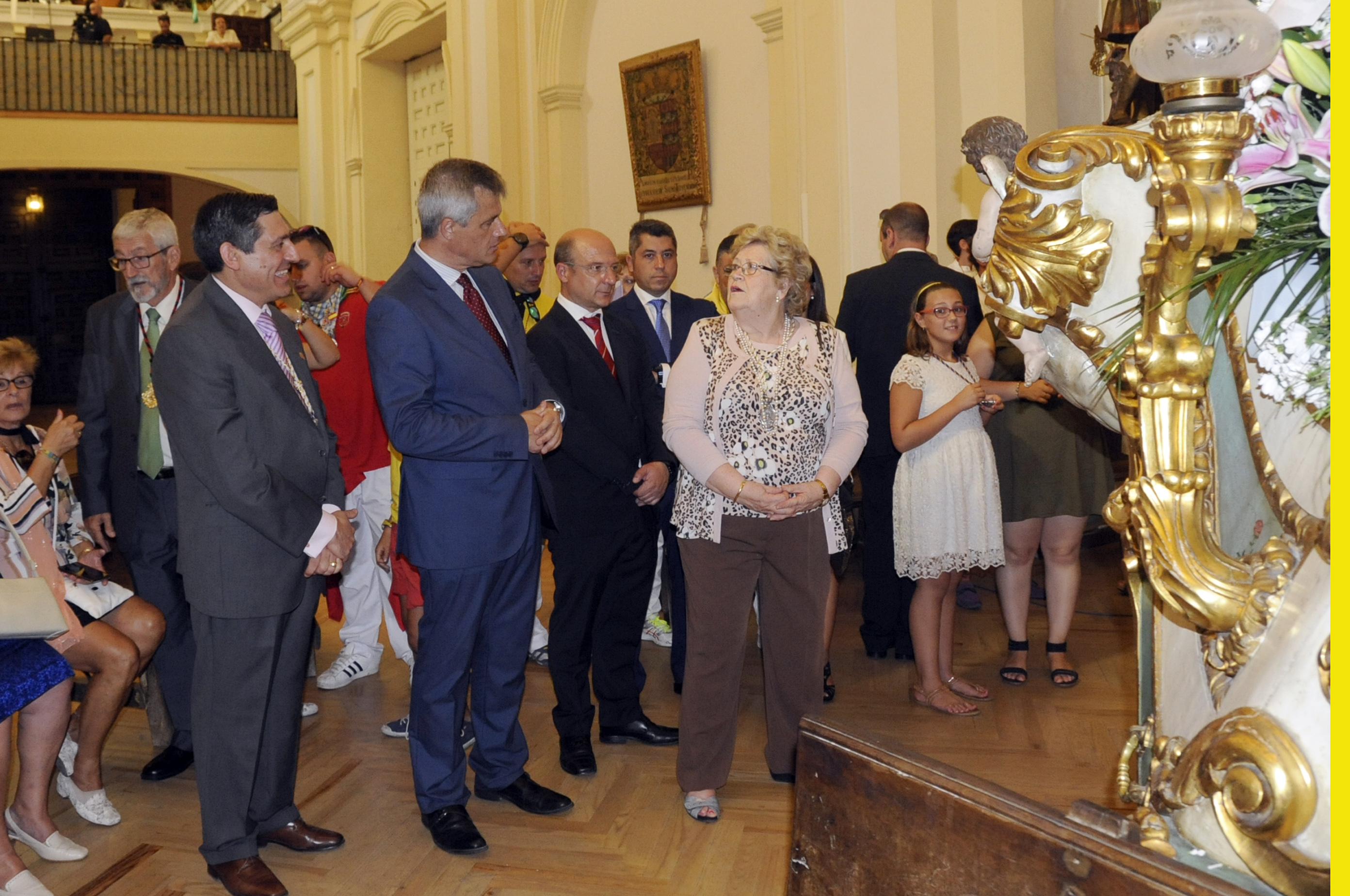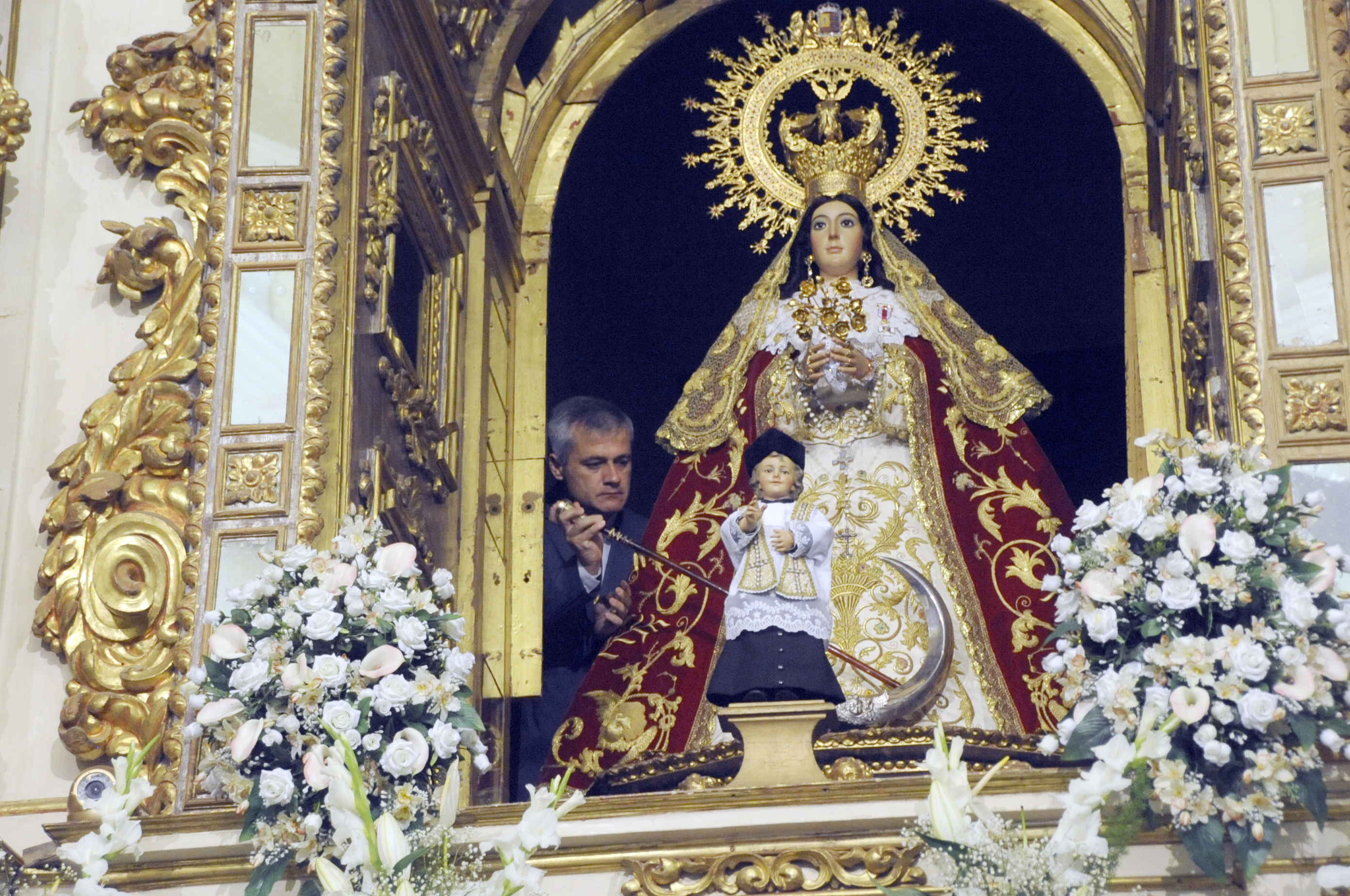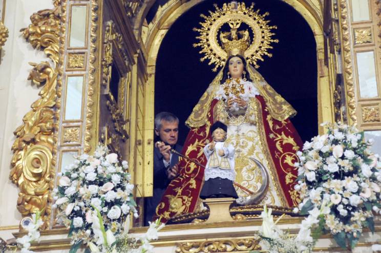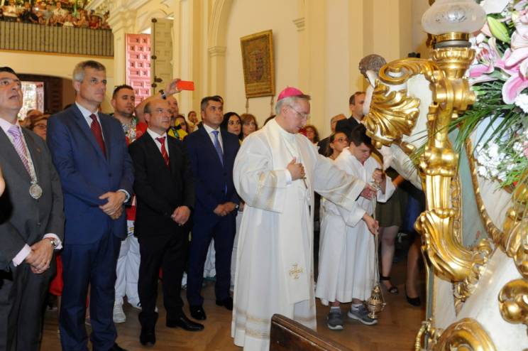 Tras su finalización, con la presencia de miles de vecinos, se ha llevado a cabo la bajada de la talla de la Virgen desde la Ermita a la antigua carroza de madera policromada mediante un sistema de torno que funciona tal y como lo hacía hace cien años, con el sonido de fondo de una salve.