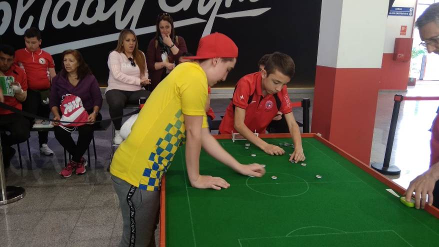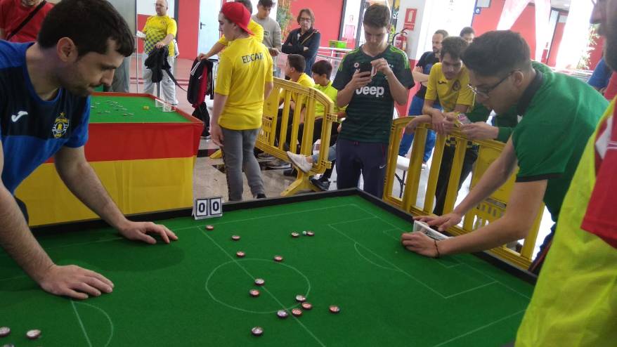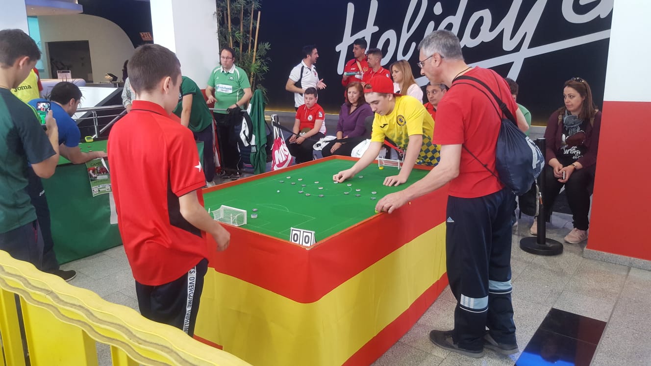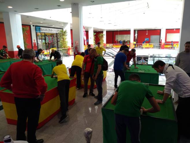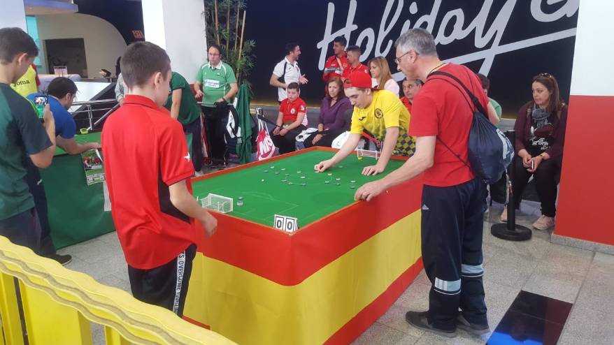 Al fondo, apoyo del Ayto (Copiar)Imagen en alta resolución. Este enlace se abrirá mediante lightbox, puede haber un cambio de contextoAl fondo, apoyo del Ayto (Copiar)Los pasados días 2 y 3 de marzo, la Asociación Fútbol Chapas Móstoles organizó la séptima edición del Open de Móstoles de Fútbol Chapas en el Centro Comercial la Fuensanta.