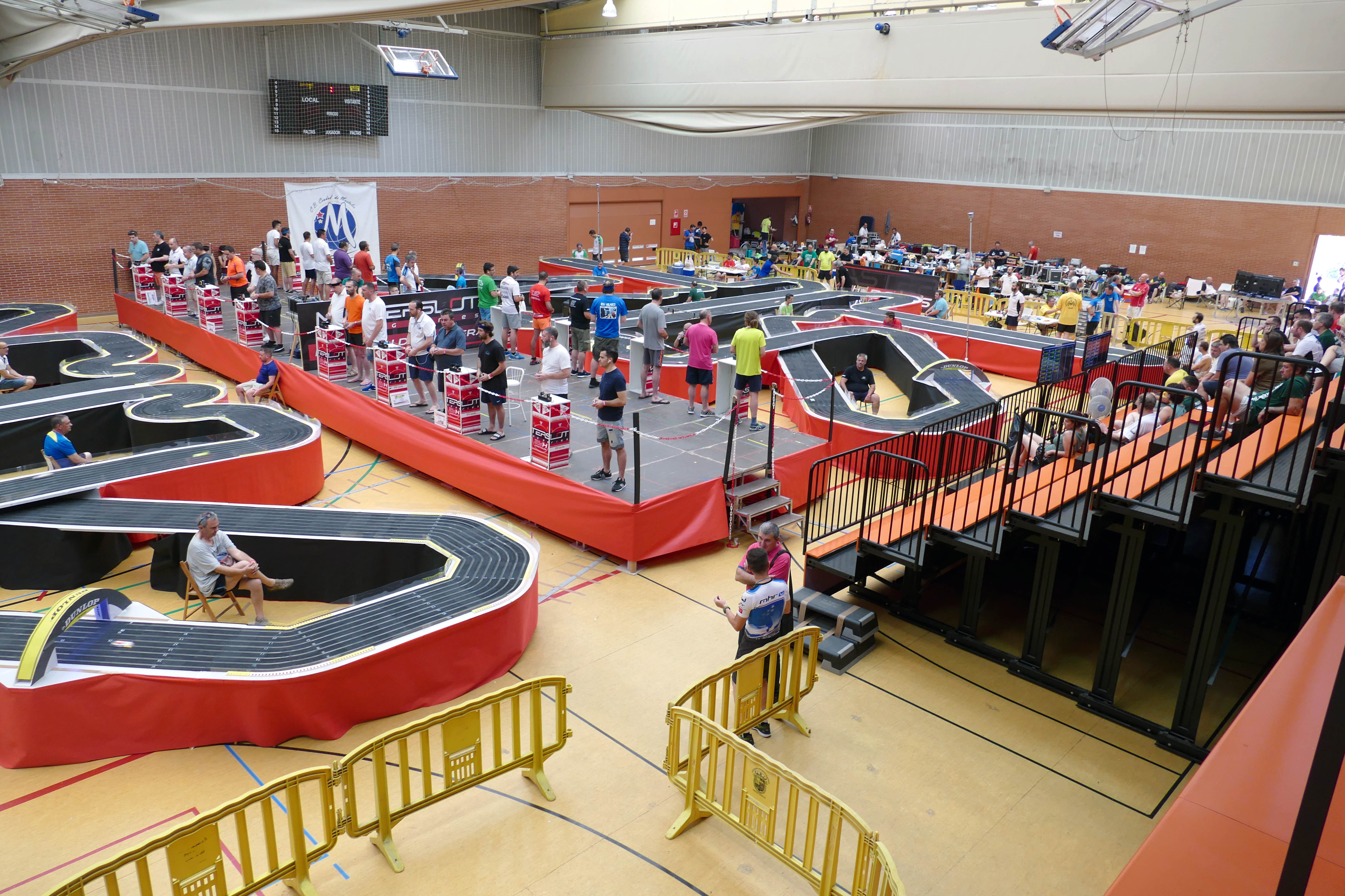 Imagen en alta resolución. Este enlace se abrirá mediante lightbox, puede haber un cambio de contextoLa XIV Edición del MasterSlot 2018, se ha celebrado durante este fin de semana en el Pabellón Municipal de Los Rosales. La prueba, que ha contado con la colaboración de la Concejalía de Deportes, tiene carácter internacional y emula las míticas 24 horas de Lemans (recientemente ganadas por Fernando Alonso) pero a escala 1/32 y con coches eléctricos. En esta ocasión se dieron cita 44 equipos con una total de 250 participantes españoles, portugueses, argentinos y colombianos.