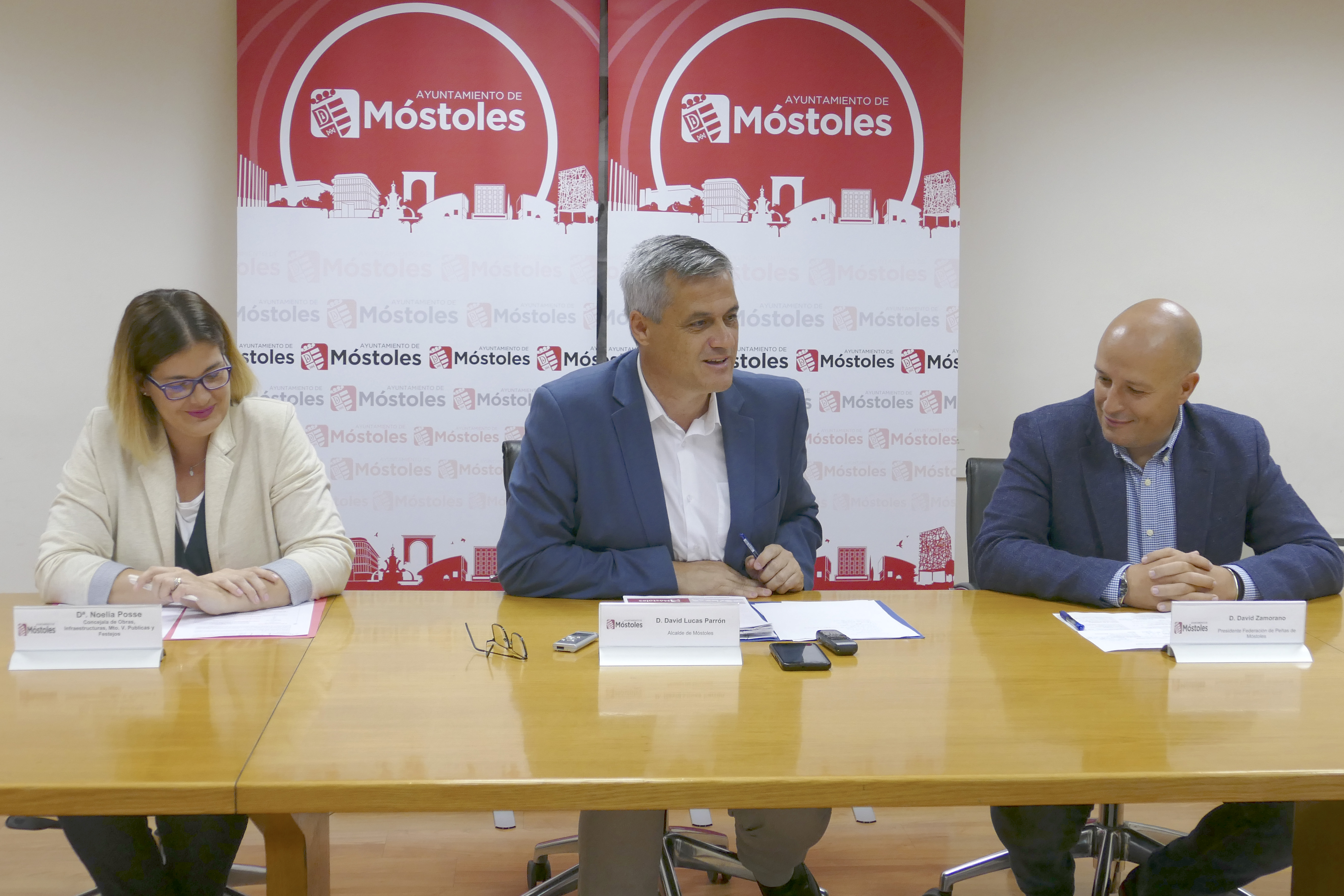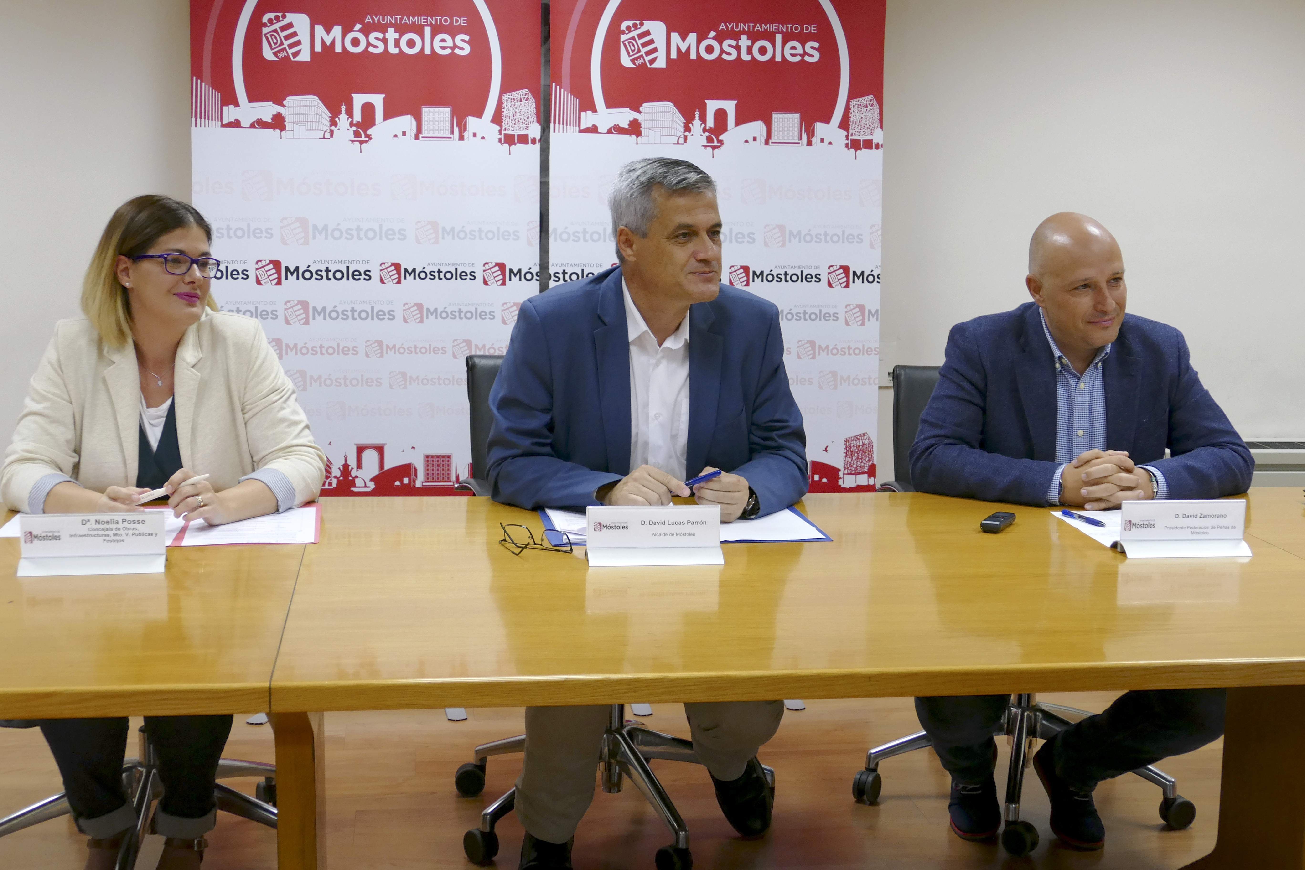 Imagen en alta resolución. Este enlace se abrirá mediante lightbox, puede haber un cambio de contextoEl Alcalde de Móstoles, David Lucas, junto a la concejala de Obras, Infraestructuras, Mantenimiento de Vías Públicas y Festejos, Noelia Posse, y el presidente de la Federación de Peñas, David Zamorano, han presentado el programa de las Fiestas de Móstoles de septiembre, declaradas de interés turístico regional, que este año se celebrarán desde el 11 al 16 del presente mes.