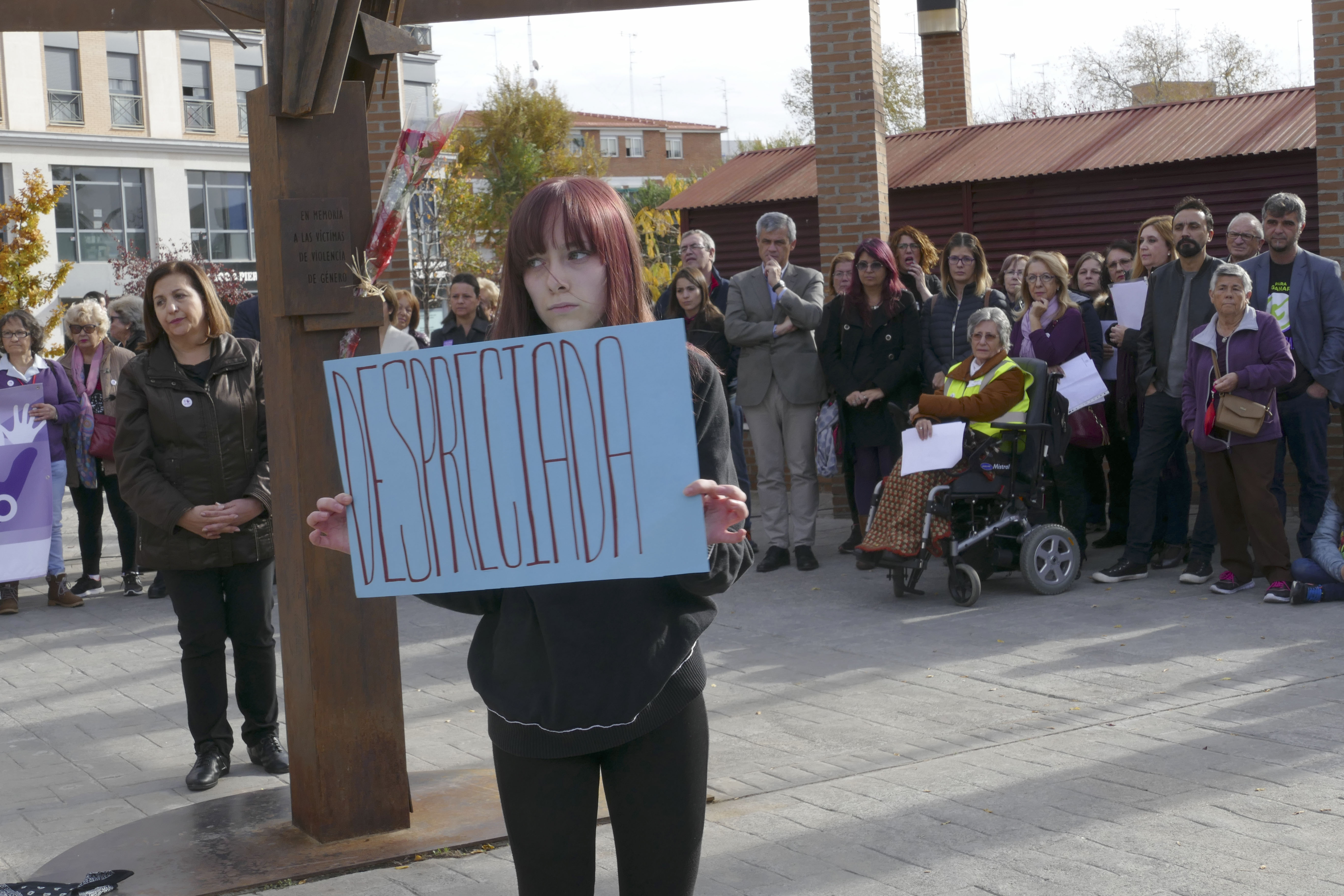 La marcha ha transcurrido desde el edificio de Igualdad (c/Ricardo Médem, 27) hasta el Parque Cuartel Huerta donde se encuentra la escultura en homenaje a las mujeres asesinadas por violencia de género del escultor y arquitecto Juan Ramón Martín.
