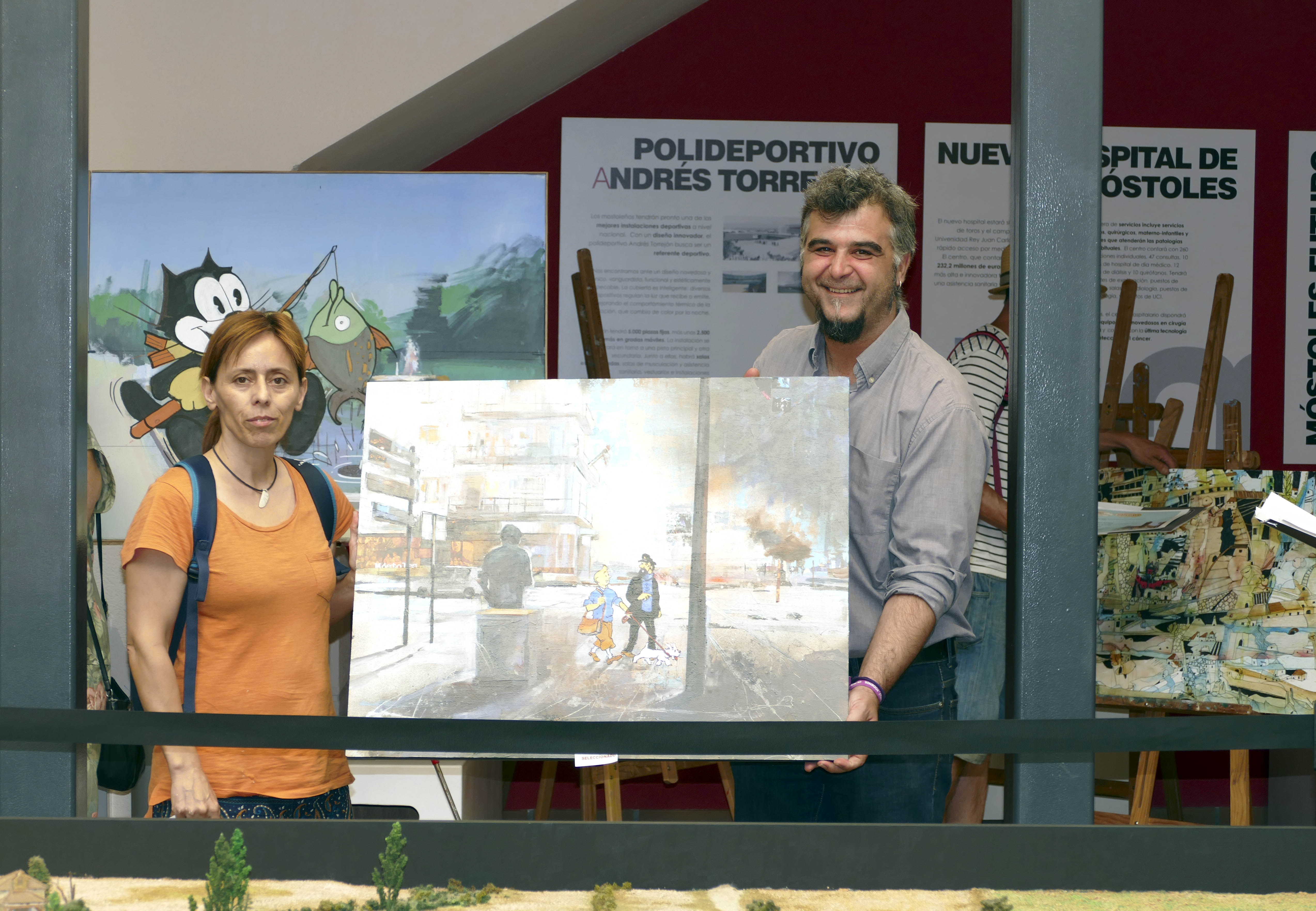 El primer premio, dotado con 1.100 euros, ha sido para Richard García Rodríguez con su obra "Asterix y Obelix en la Ciudad"; el segundo con 800 euros de premios ha recaído en Lucio Fernández de Miguel con "Tintín y Milu".