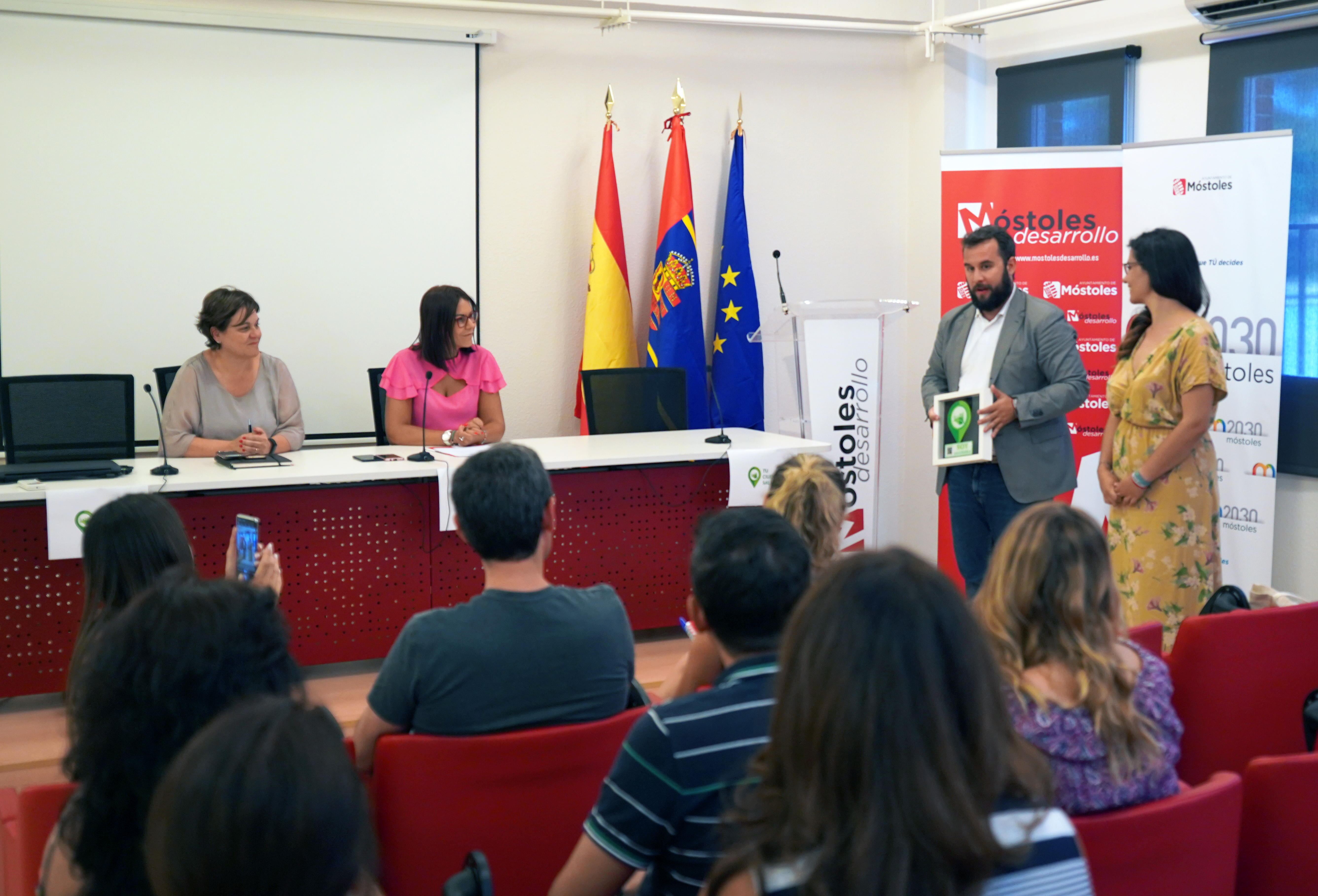 A la entrega del certificado asistió la concejala de Presidencia y responsable de Móstoles Desarrollo, Rebeca Prieto, acompañada por los directores de "Tu Ciudad Saludable", José Correa y Yasmina Sánchez