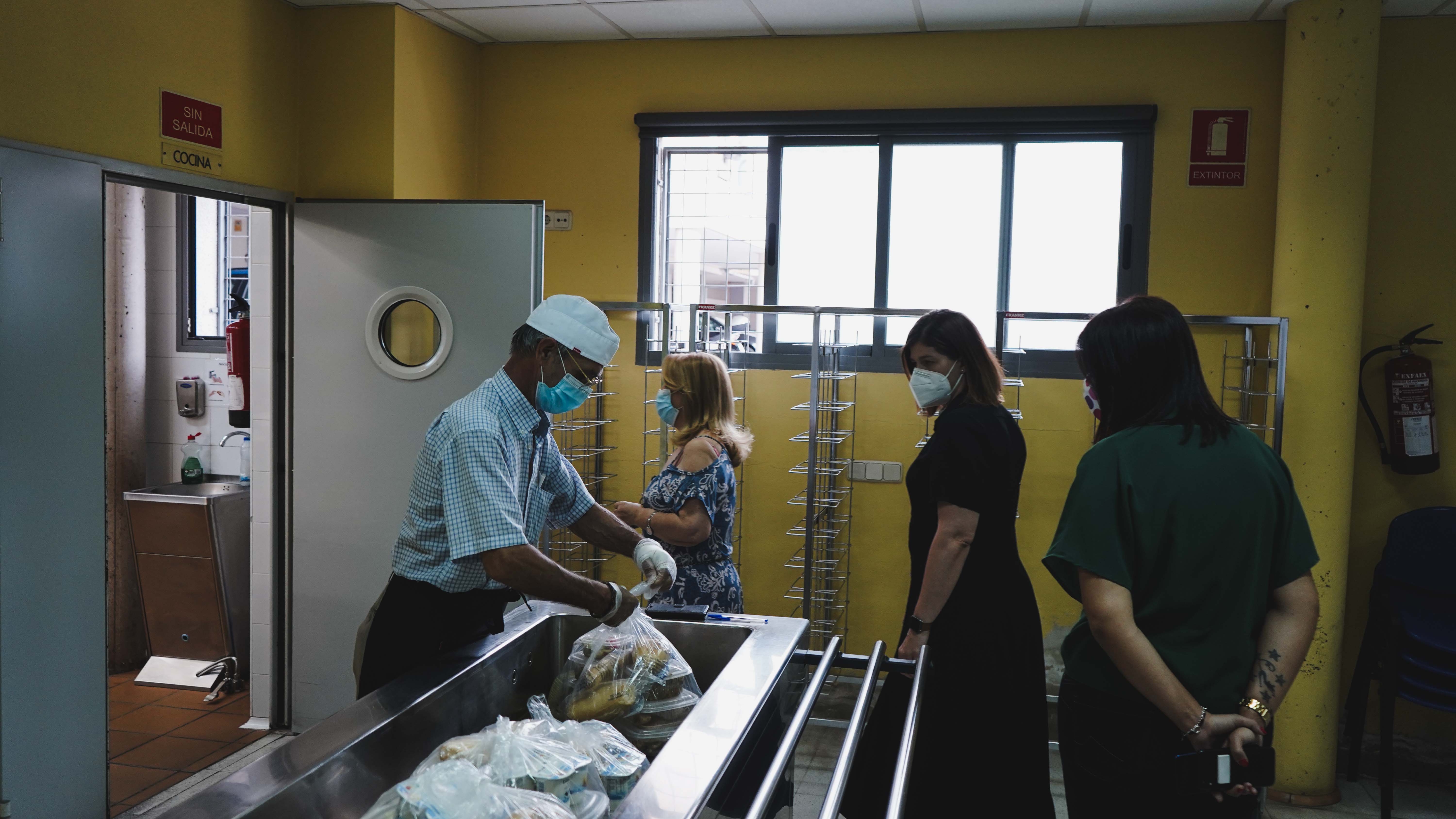 La Alcaldesa de Móstoles, Noelia Posse, acompañada por la Concejala de Derechos Sociales y Mayores, Lola Triviño, y la Concejala de Presidencia, Rebeca Prieto, ha visitado el Restaurante Municipal para agradecer a sus trabajadores la gran labor que están realizando ofreciendo una comida digna a las vecinas y vecinos en situación más desfavorecida.