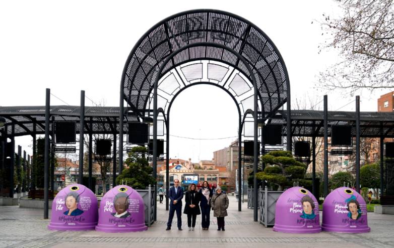 - La ciudad dará visibilidad a 15 mujeres que han marcado algún hito en la Historia colocando en diferentes puntos de Móstoles, contenedores morados con su imagen, una pequeña reseña de sus logros y una palabra: ¡Gracias!.