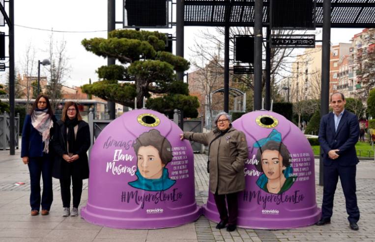 Imagen en alta resolución. Este enlace se abrirá mediante lightbox, puede haber un cambio de contextoEl Ayuntamiento de Móstoles, en colaboración con Ecovidrio, entidad encargada de la gestión del reciclado de los residuos de envases de vidrio en España, ha puesto hoy en marcha la campaña "Mujeres con eco". Esta iniciativa, enmarcada dentro del Día Internacional de la Mujer, tiene como objetivo dar las gracias a estas personalidades por su lucha como mujeres y por las mujeres y difundir sus logros, cuyo eco ha sido casi invisibilizado en la Historia. Además, pretende fomentar el reciclaje de envases de vidrio.