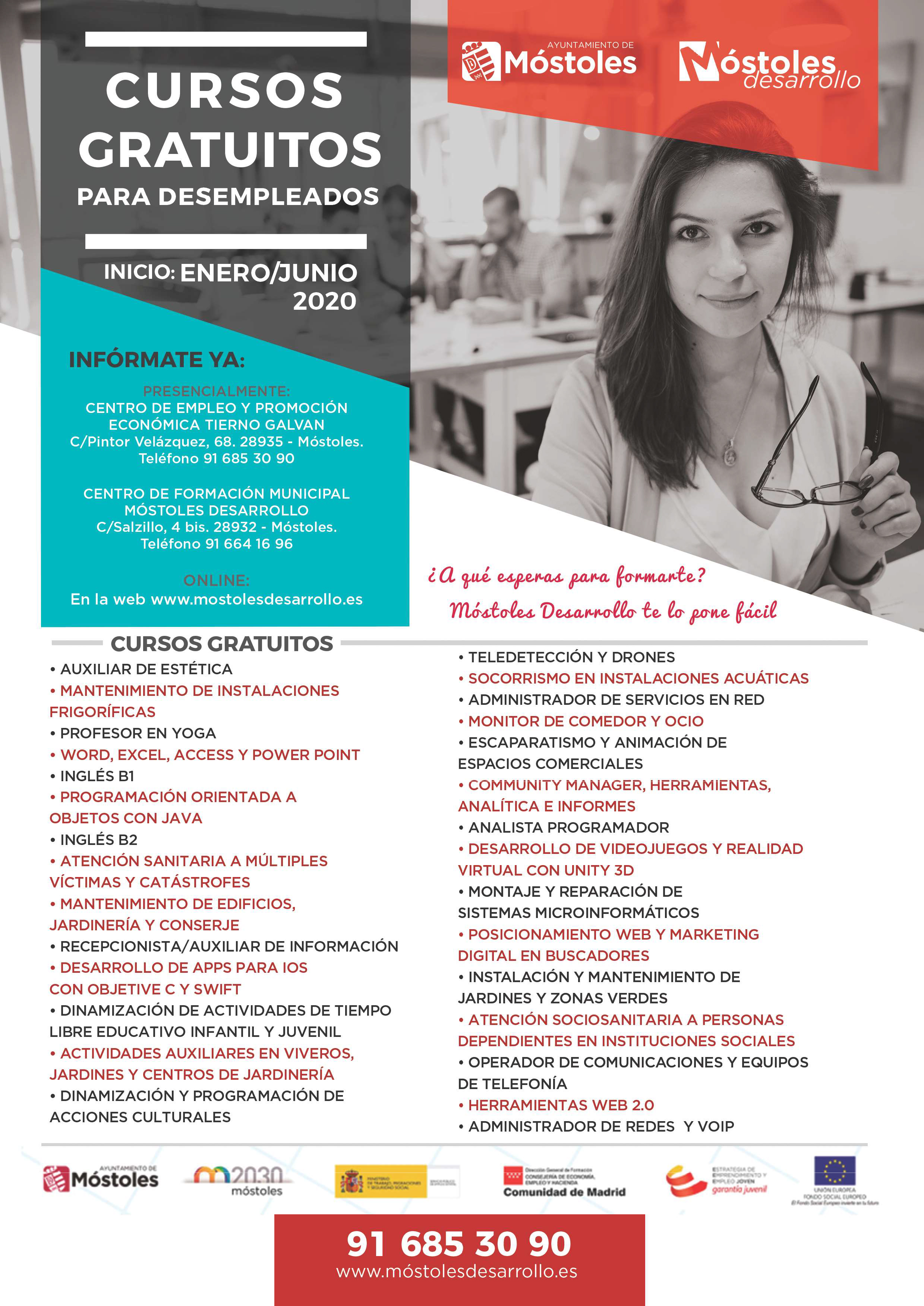 Los requisitos de acceso y contenidos de los cursos, así como las preinscripciones, pueden consultarlas en la página web https://www.mostolesdesarrollo.es/cursos-gratuitos.php