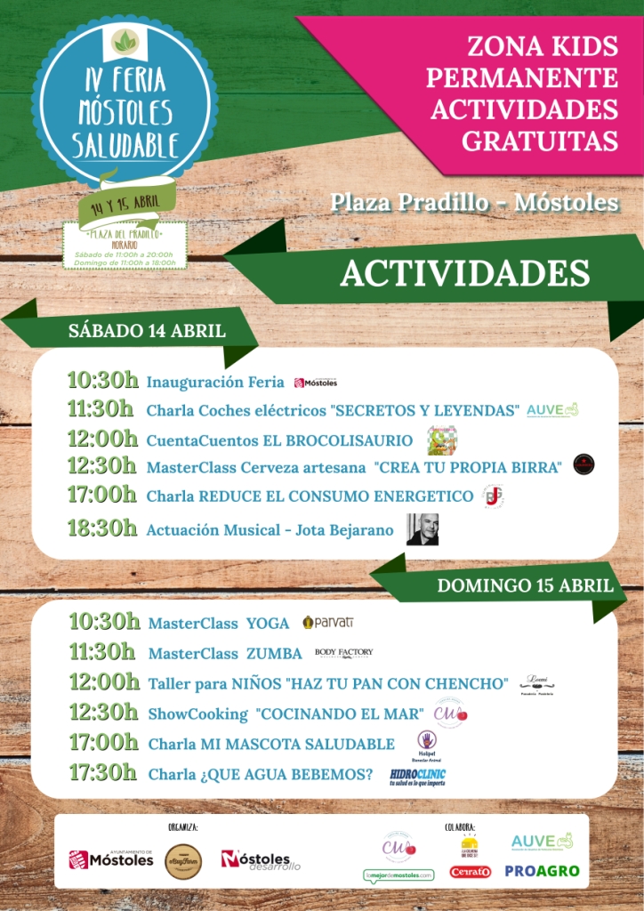 Entre las actividades que tendrán lugar en la feria, se contará con actividades deportivas saludables como una masterclass de zumba por parte de Body Factory Móstoles y una masterclass de yoga por Yoga y Música Parvati para sentir los beneficios del yoga y donde se recomienda llevar esterilla.