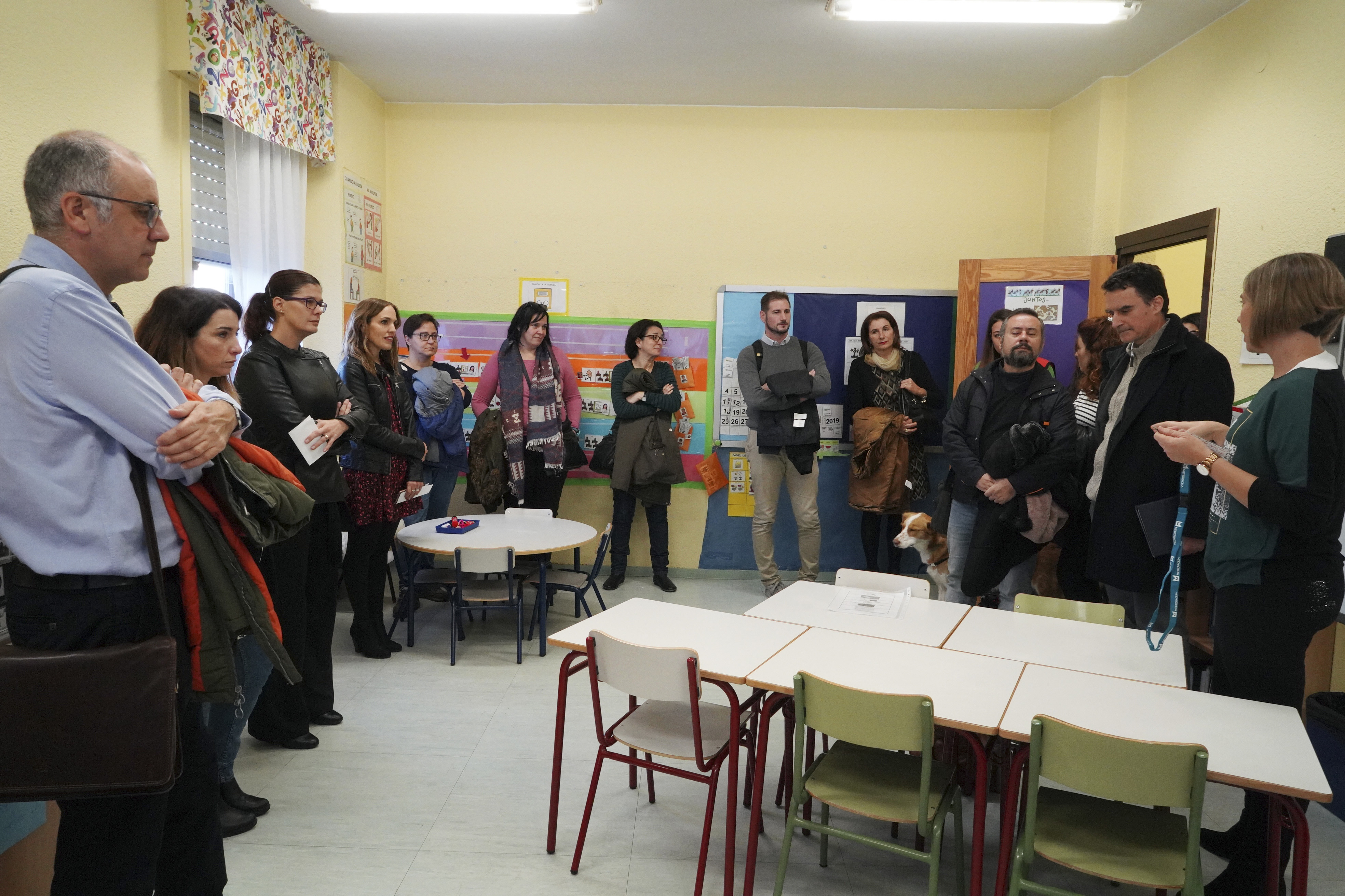 La Alcaldesa Noelia Posse, acompañada por la Concejala de Educación y Juventud, Natividad Gómez, junto con la directora del colegio, Eloísa Solís, el vicerrector de la Universidad Rey Juan Carlos, Andrés Martínez, y varios docentes del centro, responsables e inspectores del Área Territorial Sur de Educación, han asistido a la presentación del programa.