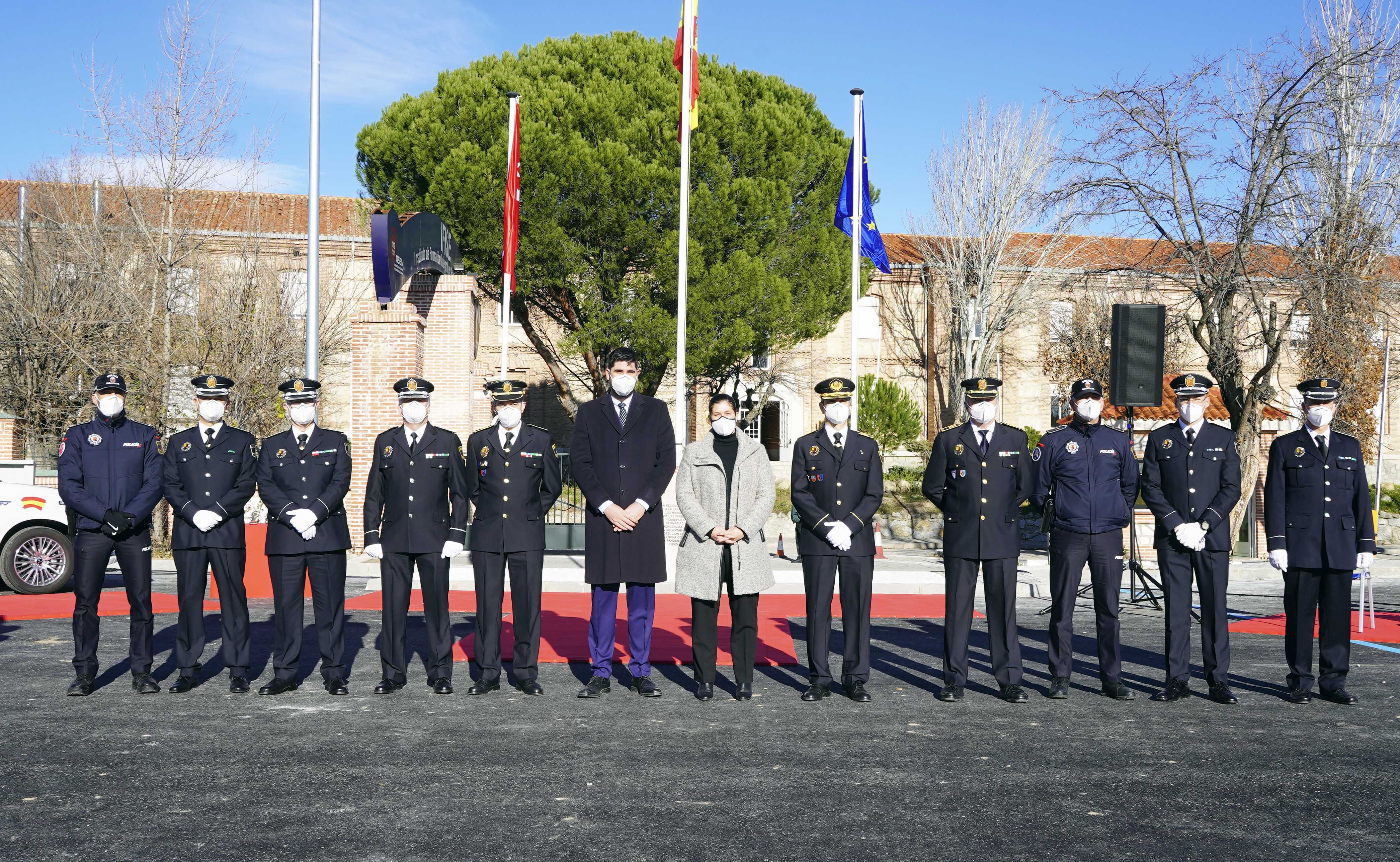 La Alcaldesa de Móstoles, Noelia Posse, acompañada por el Concejal de Seguridad, Convivencia, Cultura y Transición Ecológica, Alejandro Martín, junto con otros mandos de la Policía Municipal, ha asistido al acto que se ha celebrado en el Instituto de Formación Integral en Seguridad y Emergencias de la Comunidad de Madrid.