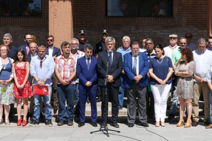 Imagen en alta resolución. Este enlace se abrirá mediante lightbox, puede haber un cambio de contextoCon motivo de la conmemoración del 20 aniversario del asesinato de Miguel A. Blanco Garrido, miembros de la Corporación municipal, trabajadores municipales y ciudadanía de la localidad rindieron esta mañana, en la puerta de la Casa Consistorial (Plaza de España, s/n), un emotivo homenaje en su recuerdo y en el de todas las víctimas del terrorismo. Asimismo, el pleno ordinario de julio, celebrado esta mañana, ha leído y aprobado una declaración institucional por este motivo.