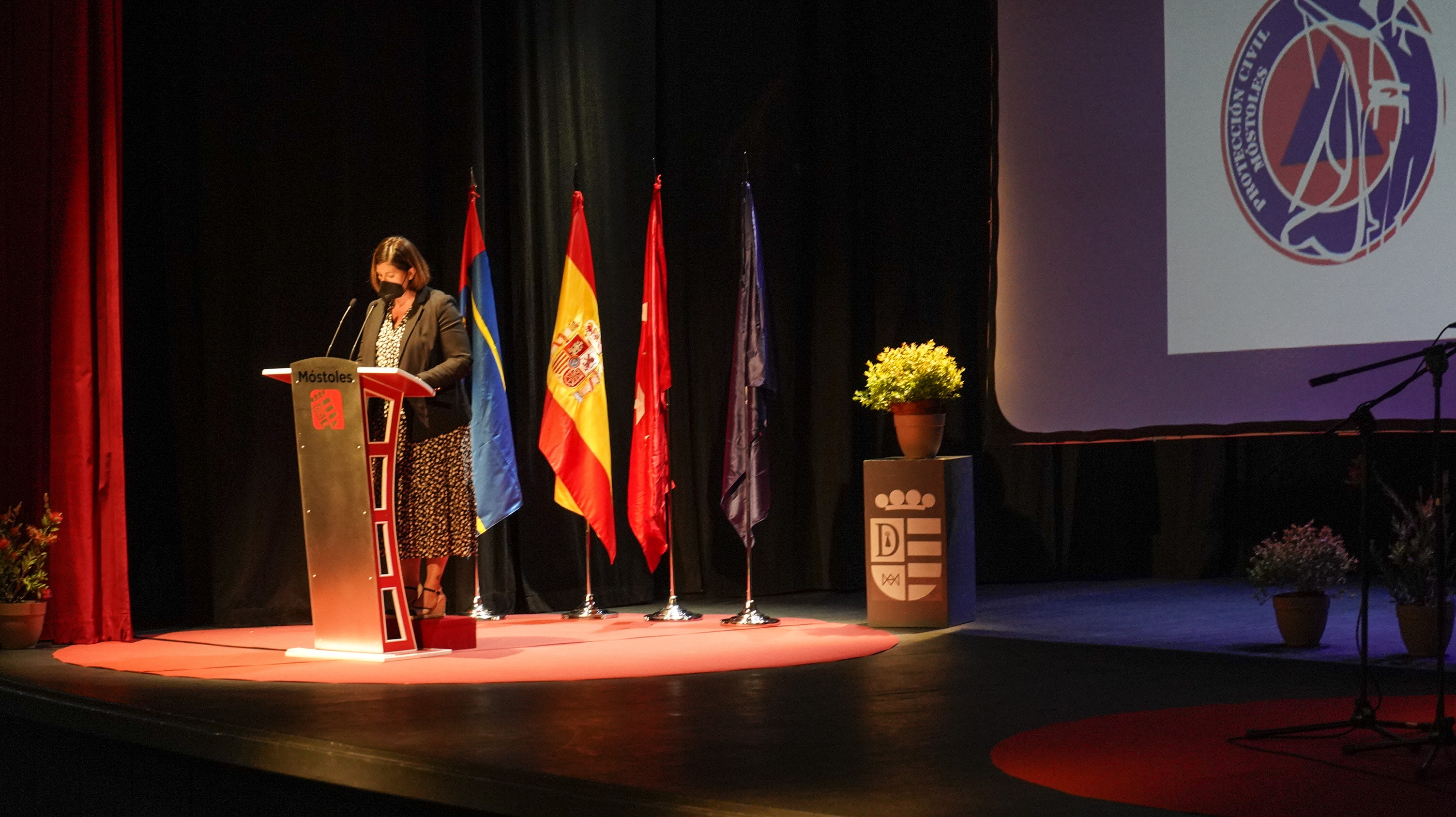 La Alcaldesa de Móstoles, Noelia Posse, acompañada por el Concejal de Seguridad, Convivencia, Cultura y Transición Ecológica, Alejandro Martín, y el Jefe de la Agrupación de Protección Civil, Carlos Herrador, la Subdirectora de Protección Civil de la Comunidad de Madrid, Esperanza Junquera, la Portavoz de Podemos, Mónica Monterreal, así como otros miembros de la Corporación Municipal, ha presidido el acto que no pudo celebrarse el pasado 24 de abril, día del aniversario de la Agrupación.