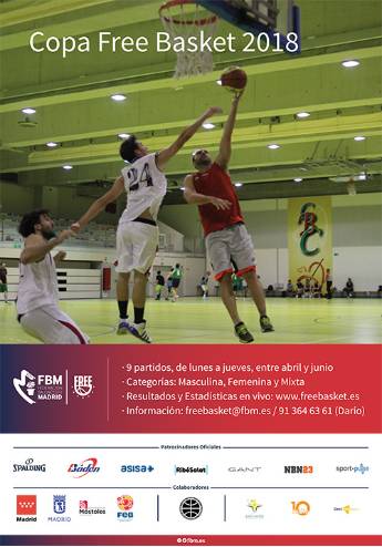 Imagen en alta resolución. Este enlace se abrirá mediante lightbox, puede haber un cambio de contextoMóstoles será sede de la IV edición de la Copa Free Basket 2018. El acuerdo entre la Concejalía de Deportes y la Federación de Baloncesto de Madrid ha hecho posible que se puedan realizar partidos en el Pabellón Benito Pérez Galdós (Paseo Arroyomolinos, 44). La Free Basket es una competición diseñada para compaginar la práctica del deporte con la vida laboral y familiar, con horarios flexibles. La Copa se disputará entre los días 9 de abril y 21 de junio y asegura a cada equipo la disputa de nueve partidos con un coste muy ajustado.