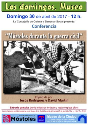 Imagen en alta resolución. Este enlace se abrirá mediante lightbox, puede haber un cambio de contextoEl Museo de la Ciudad organizará el día 30 de abril, a las 12 horas, una conferencia sobre "Móstoles durante la guerra civil", impartida por David Martín del Hoyo y Jesús Rodríguez Morales.