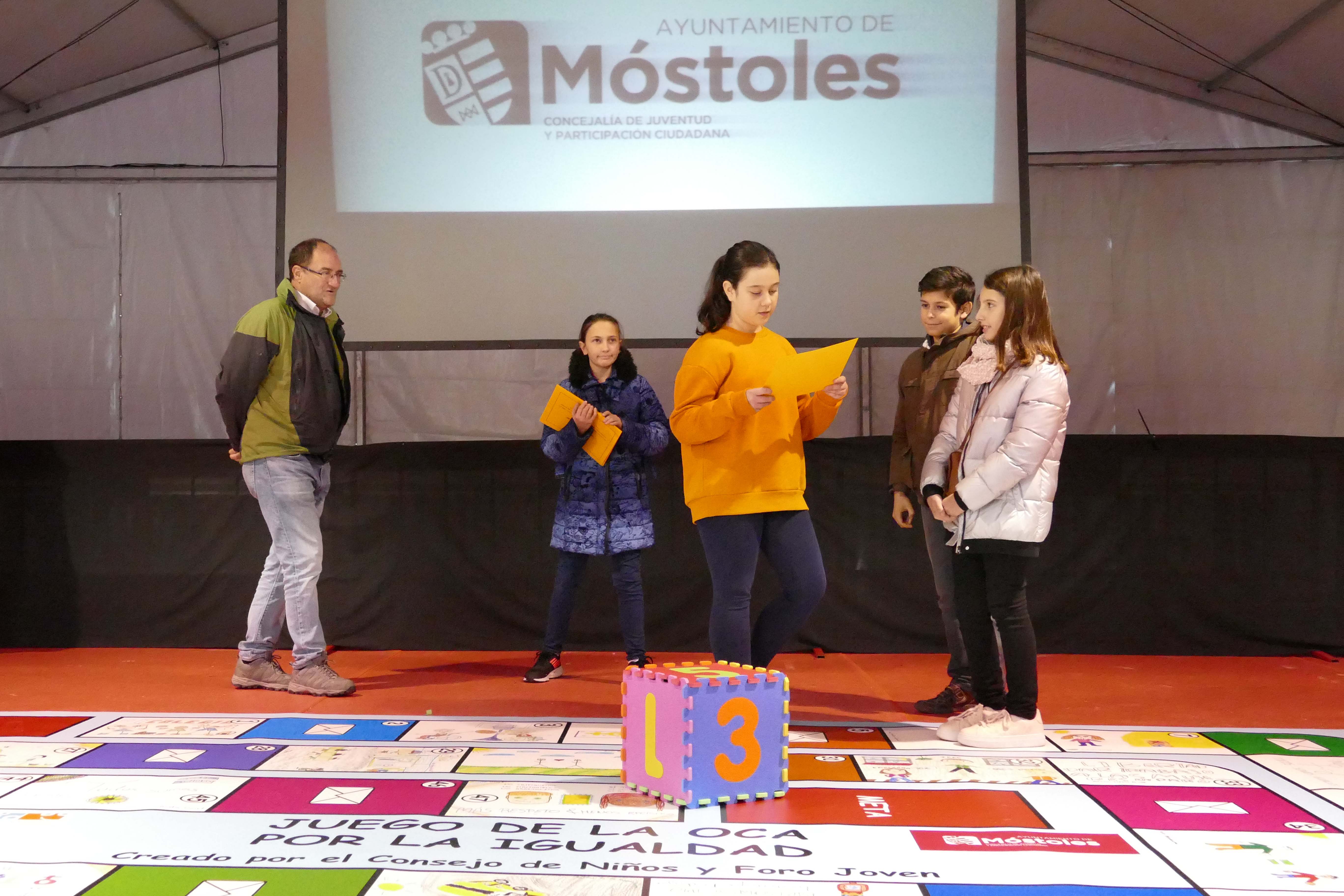 Imagen en alta resolución. Este enlace se abrirá mediante lightbox, puede haber un cambio de contextoDentro de las actividades programadas con motivo del Día Universal de los Derechos de la Infancia y Adolescencia, se ha celebrado este sábado una actividad en la que niñas y niños han podido jugar a la actividad "Juego de la Oca por la Igualdad", creado por el Consejo de Niños y el Foro Joven, que ha contado con la asistencia de las concejalas Arancha Fernández, de Juventud y Participación Ciudadana e Isabel Cruceta, de Educación, además de padres y madres de las y los participantes.