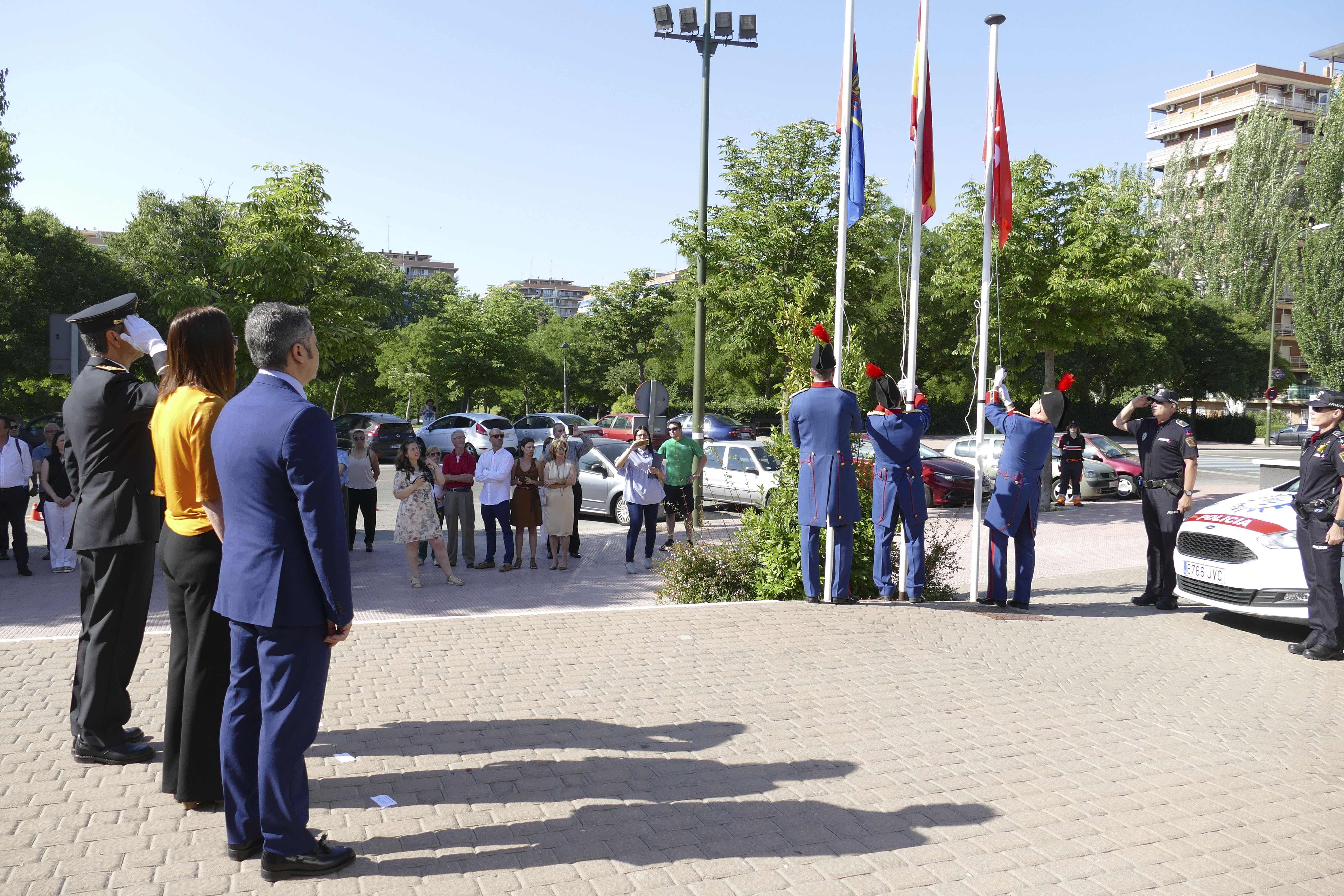La alcaldesa de Móstoles, Noelia Posse, ha presidido esta mañana el acto institucional celebrado con motivo de la festividad de San Juan Bautista, patrón de la Policía, junto a ella ha estado el concejal de Presidencia, Seguridad Ciudadana y Comunicación, Roberto Sánchez.