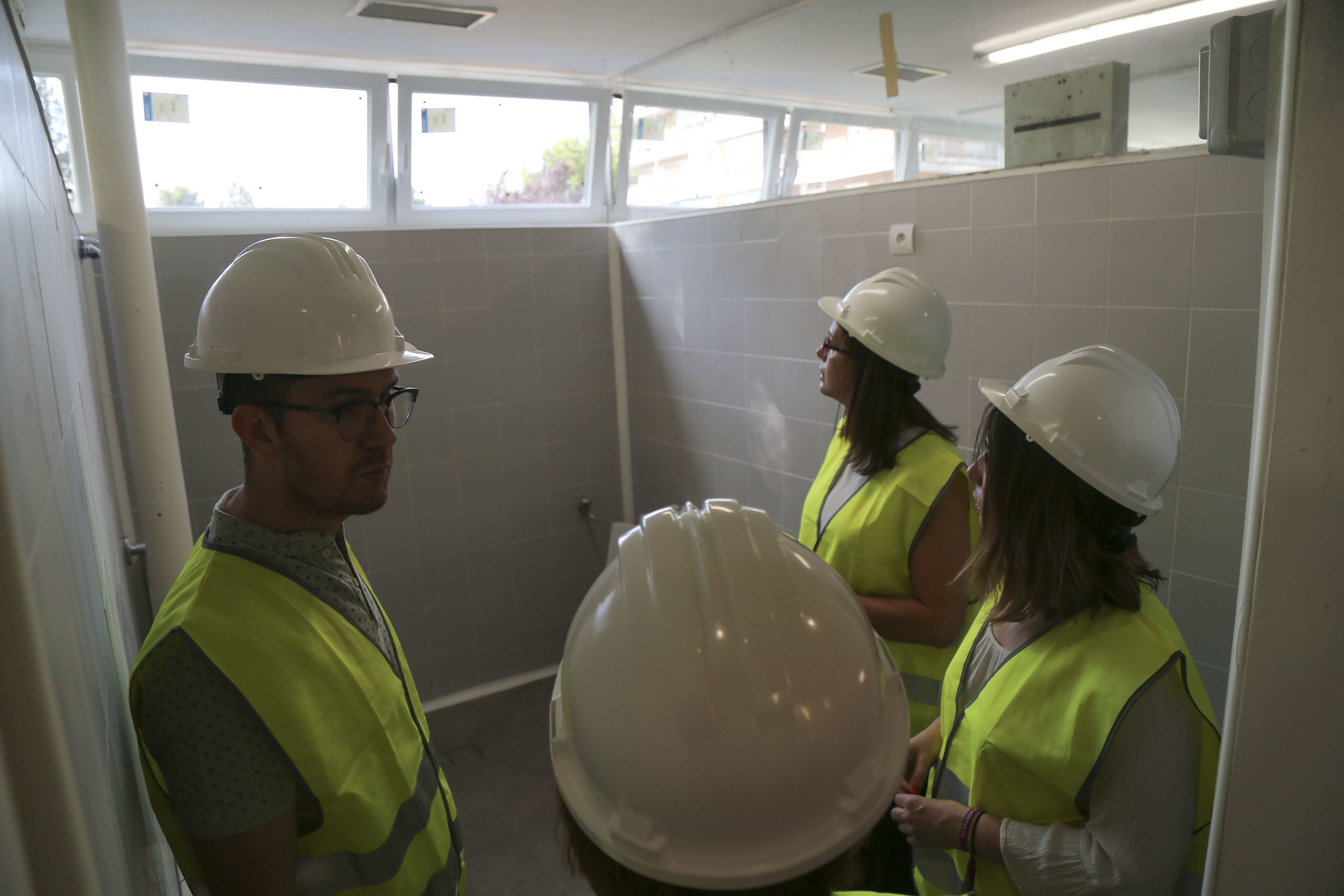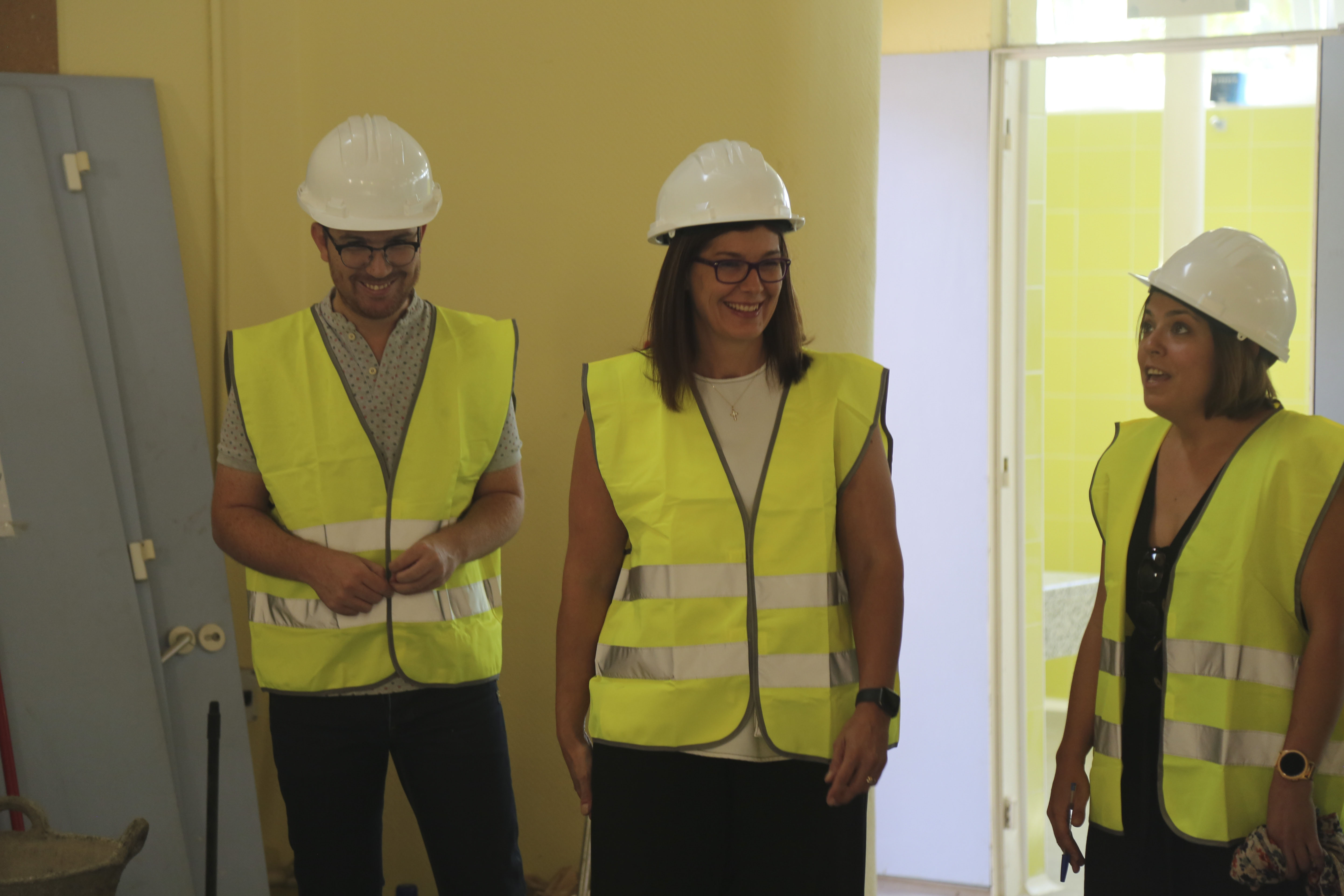 En primer lugar, la Alcaldesa ha supervisado las obras que se están llevando a cabo en el CEIP Miguel Delibes, donde se está procediendo a los trabajos de conservación de los aseos del gimnasio y a la sustitución del pavimento del mismo.