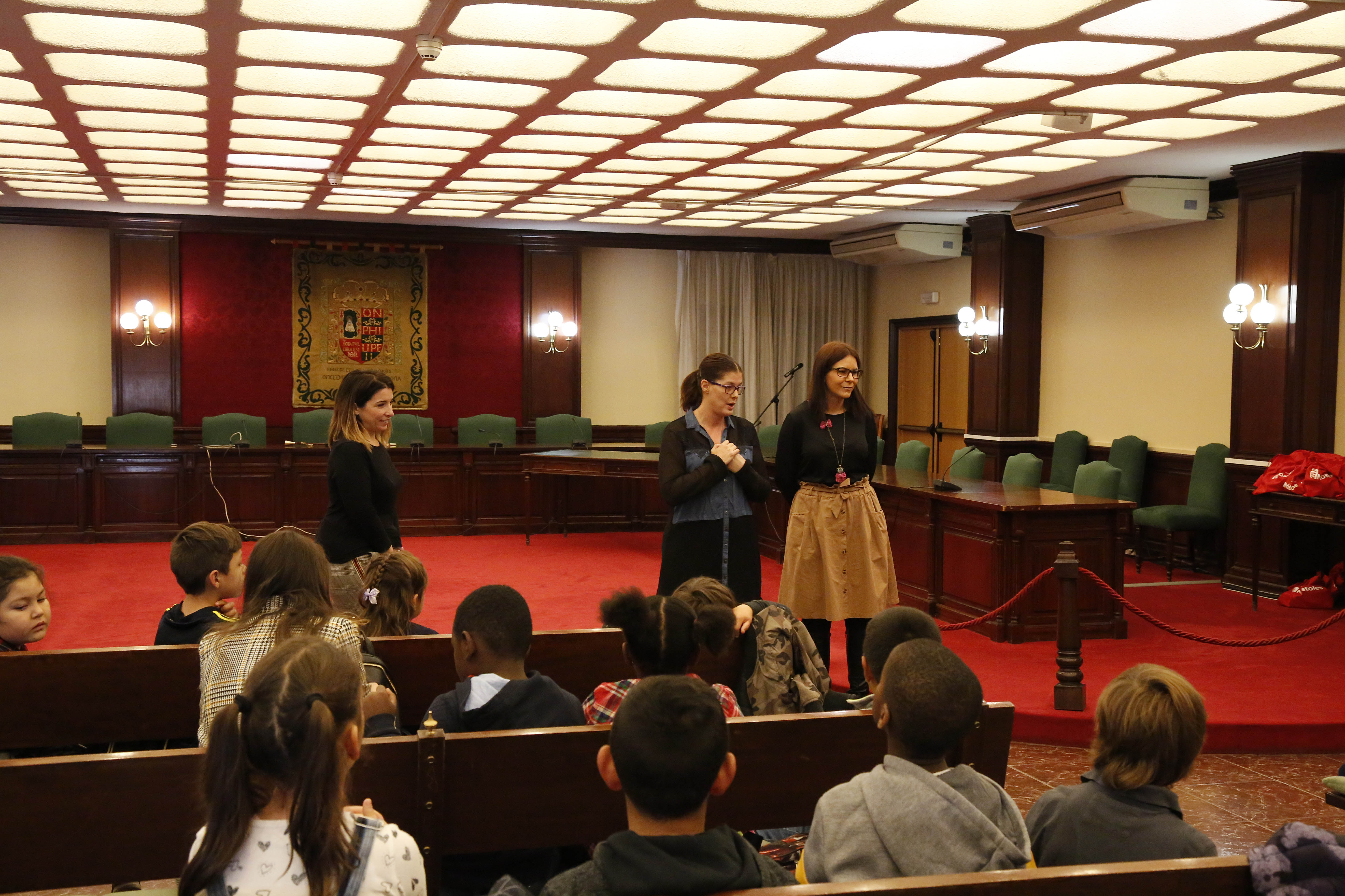 Imagen en alta resolución. Este enlace se abrirá mediante lightbox, puede haber un cambio de contextoLa alcaldesa de Móstoles, acompañada por la concejala de Educación y Juventud, Natividad Gómez, y la concejala de Presidencia, Rebeca Prieto, ha recibido esta mañana en el salón de plenos del Ayuntamiento a una treintena de alumnos del CEIP Pío Baroja del municipio. En el marco del proyecto del centro, "Conozco mi localidad", los jóvenes estudiantes de 2º primaria, acompañados por varios de sus profesoras, tuvieron la oportunidad de conocer personalmente a la primera edil quien, a su vez, les explicó las funciones que desempeña como alcaldesa.