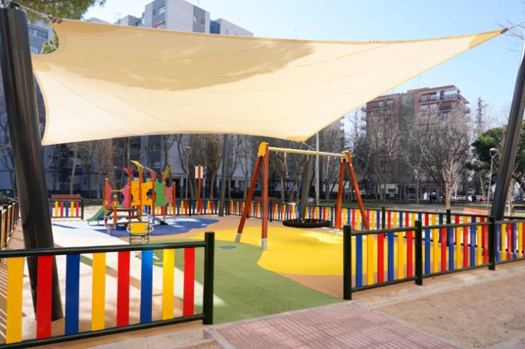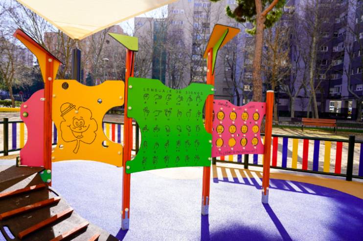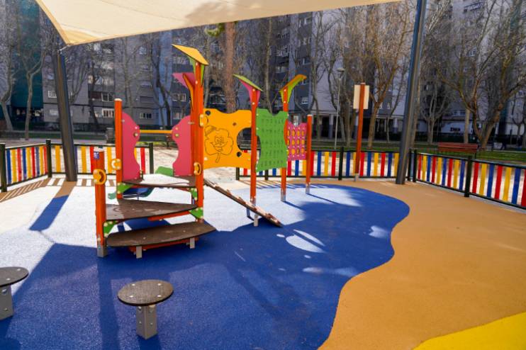 - Esta nueva área infantil inclusiva está cubierta para proteger del sol y la lluvia y cuenta con suelo de caucho con un itinerario accesible que guía hasta los diferentes elementos de juego.