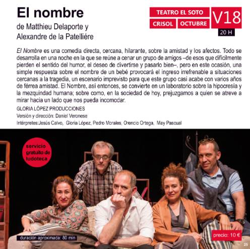 Imagen en alta resolución. Este enlace se abrirá mediante lightbox, puede haber un cambio de contextoLa programación de "A Escena Móstoles" continúa este fin de semana con el tradicional "Concierto de Otoño" a las 20 horas en el Teatro Villa de Móstoles el viernes 18 de octubre. La Orquesta y Coro Villa de Móstoles vuelve para deleitarnos con su programa "Canciones y temas de ayer, hoy y siempre", en el que interpretarán temas de míticos grupos y cantantes. El mismo día a las 20 horas se representará la comedia "El nombre" en el Teatro El Soto.