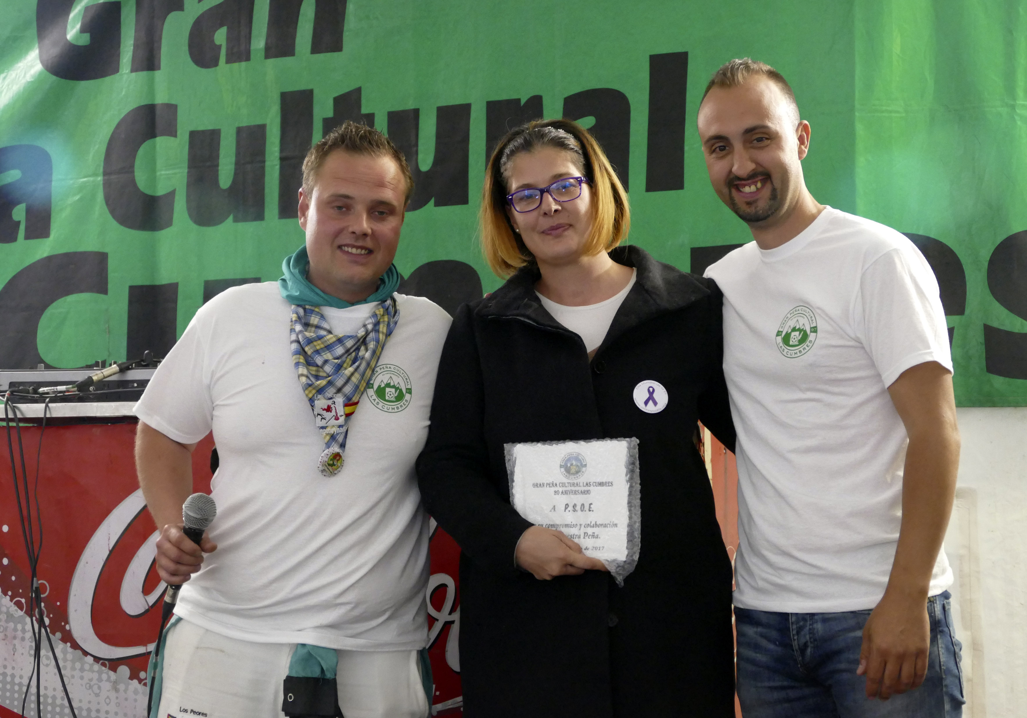 La peña cumple 20 años y ha querido reconocer, durante el almuerzo enmarcado en las Fiestas del 2 de Mayo de la localidad, la labor de todas las peñas, por su servicio de la ciudad, entregando distintos reconocimientos a sus representantes. Asimismo, el alcalde entregó, en nombre del Ayuntamiento, una placa como homenaje a su labor, al presidente de Las Cumbres, Cristian Cruz.