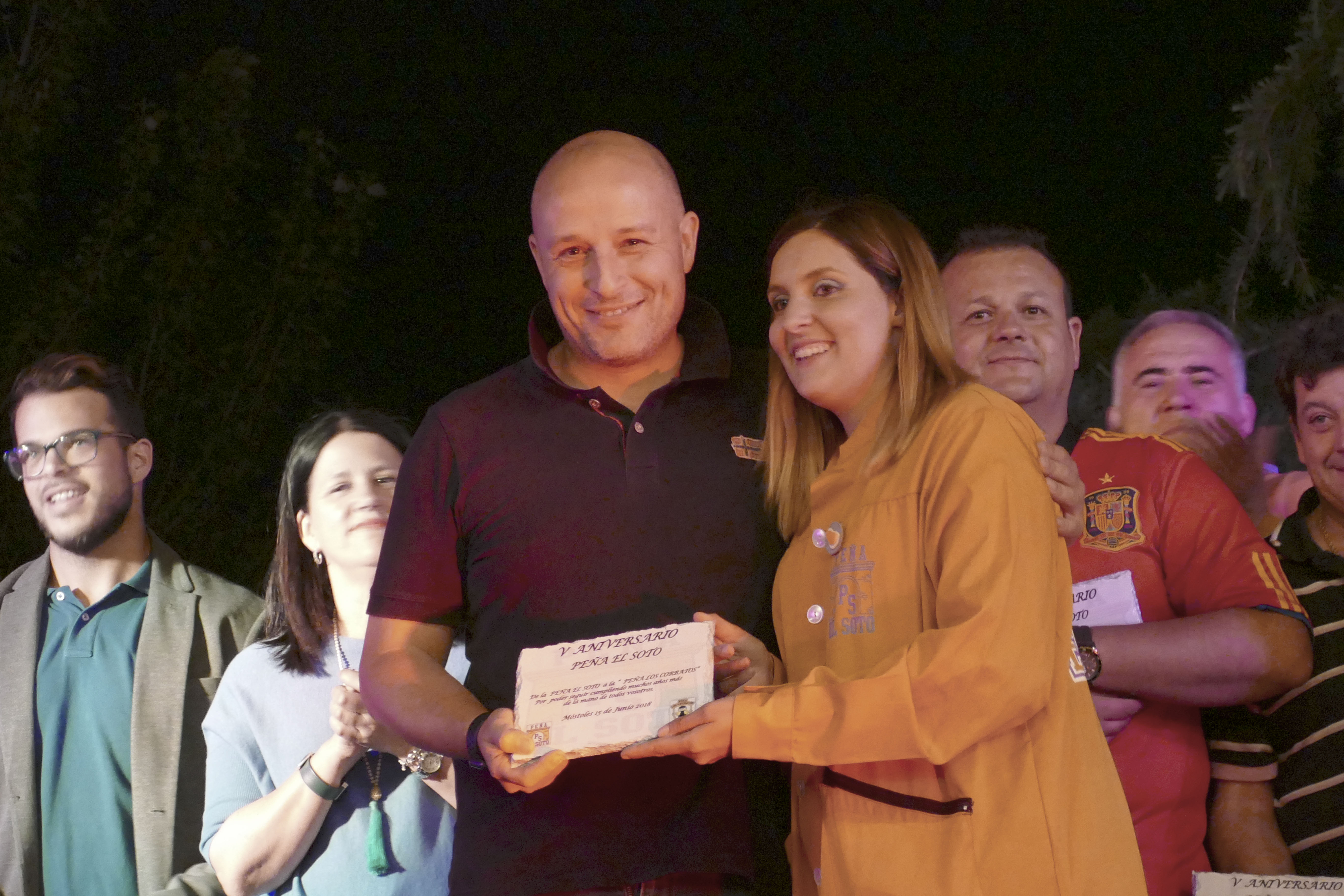V Aniversario El Soto 1Imagen en alta resolución. Este enlace se abrirá mediante lightbox, puede haber un cambio de contextoV Aniversario El Soto 1La Peña el Soto, en el marco de las celebraciones con motivo de su V Aniversario, ha reconocido a la Cadena Ser Madrid Oeste, por informar durante 35 años de la actualidad en el municipio y a Paco Sedano, por su carrera profesional y por situar el nombre de su ciudad, Móstoles, en lo más alto del futbol sala.
