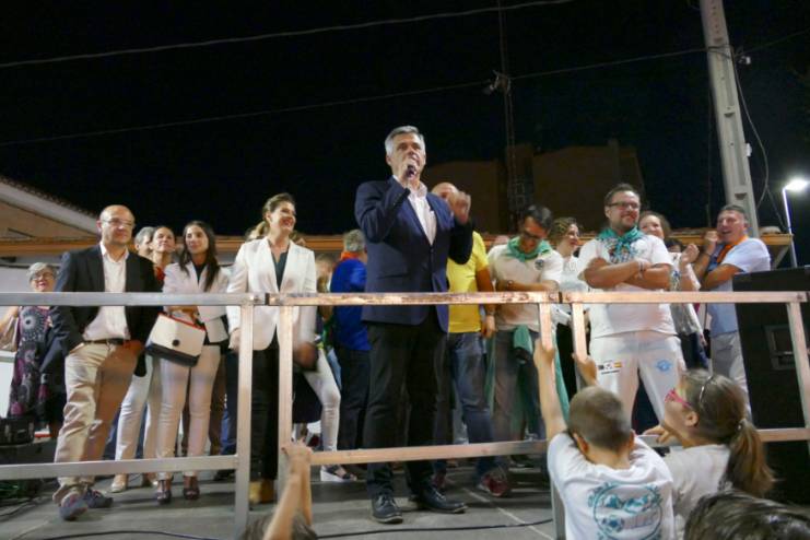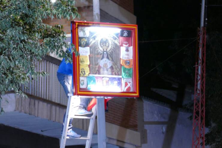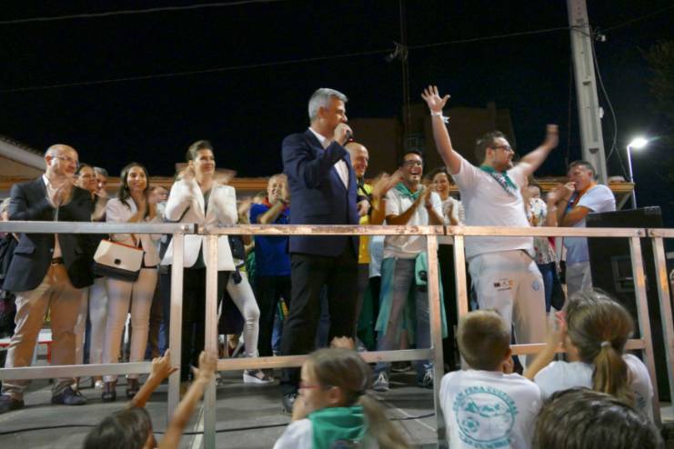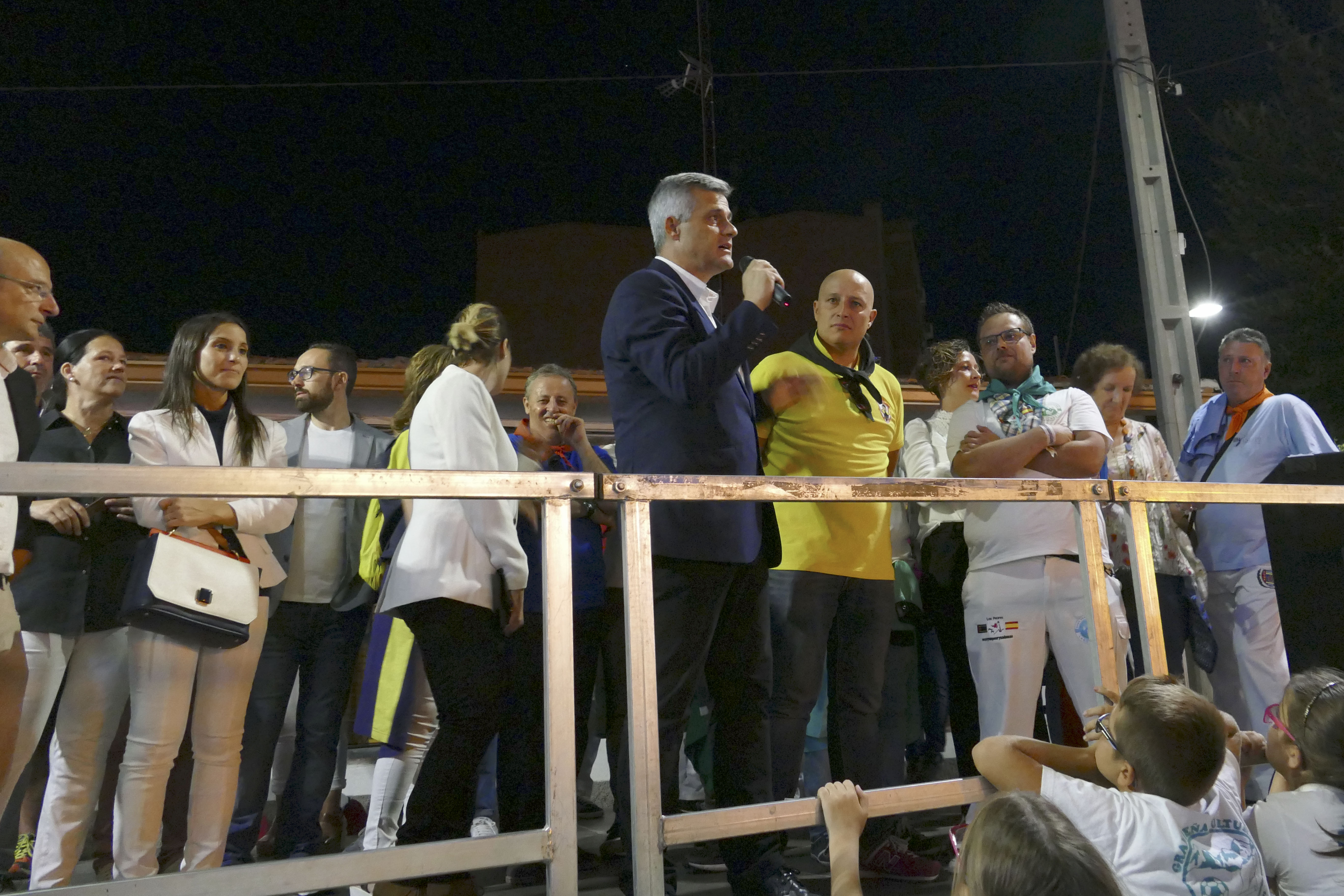 El acto se ha llevado a cabo junto a la patrona, Nuestra Señora de los Santos, en la confluencia de las calles Antonio Hernández y Andrés Torrejón, con el acompañamiento de una charanga que ha amenizado esta actividad que organiza la Federación de Peñas del municipio.