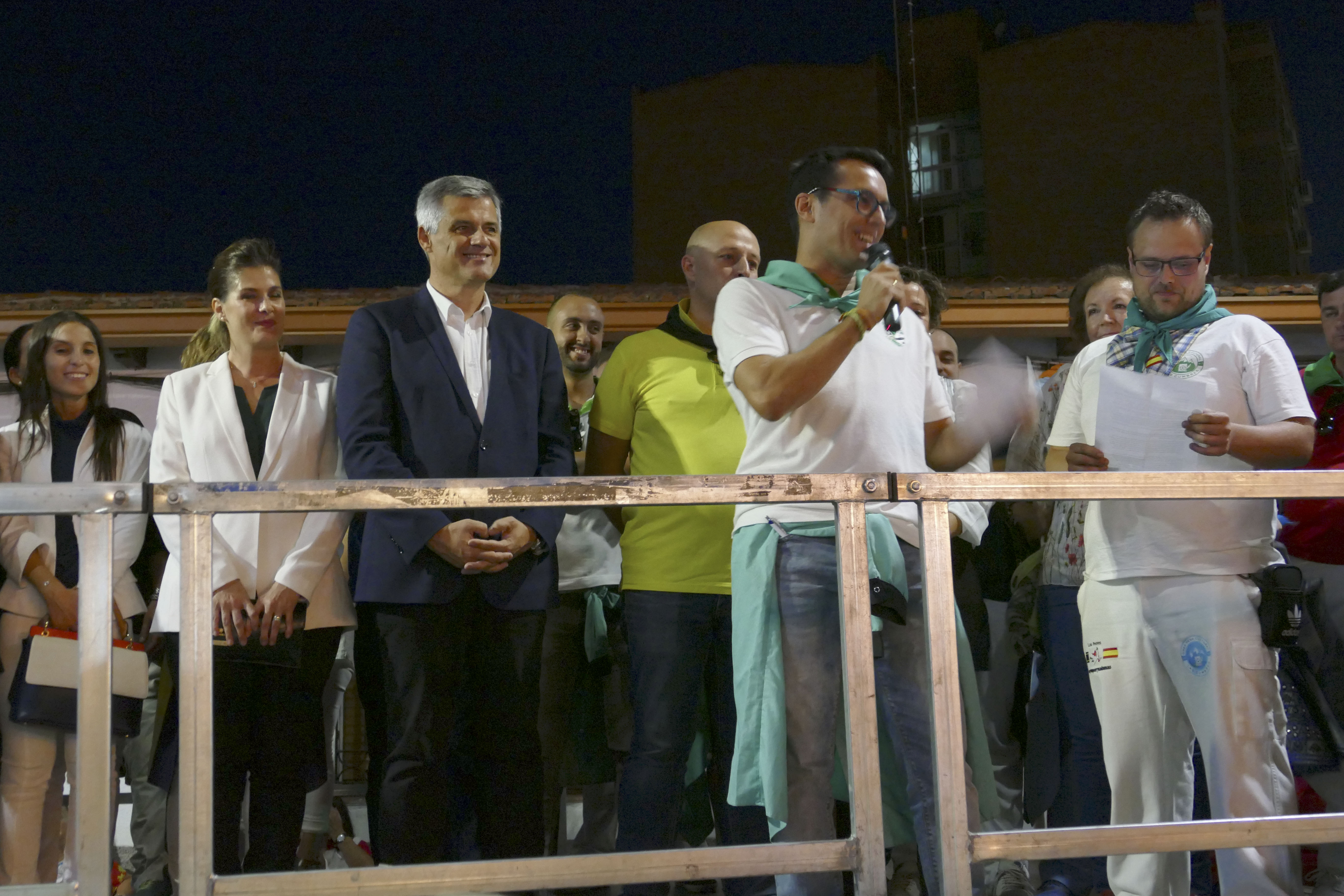 Las peñas de Móstoles celebraron anoche el tradicional descubrimiento del cuadro de pañuelos ante la multitud de ciudadanos que se congregaron junto a la estatua del Peñero.