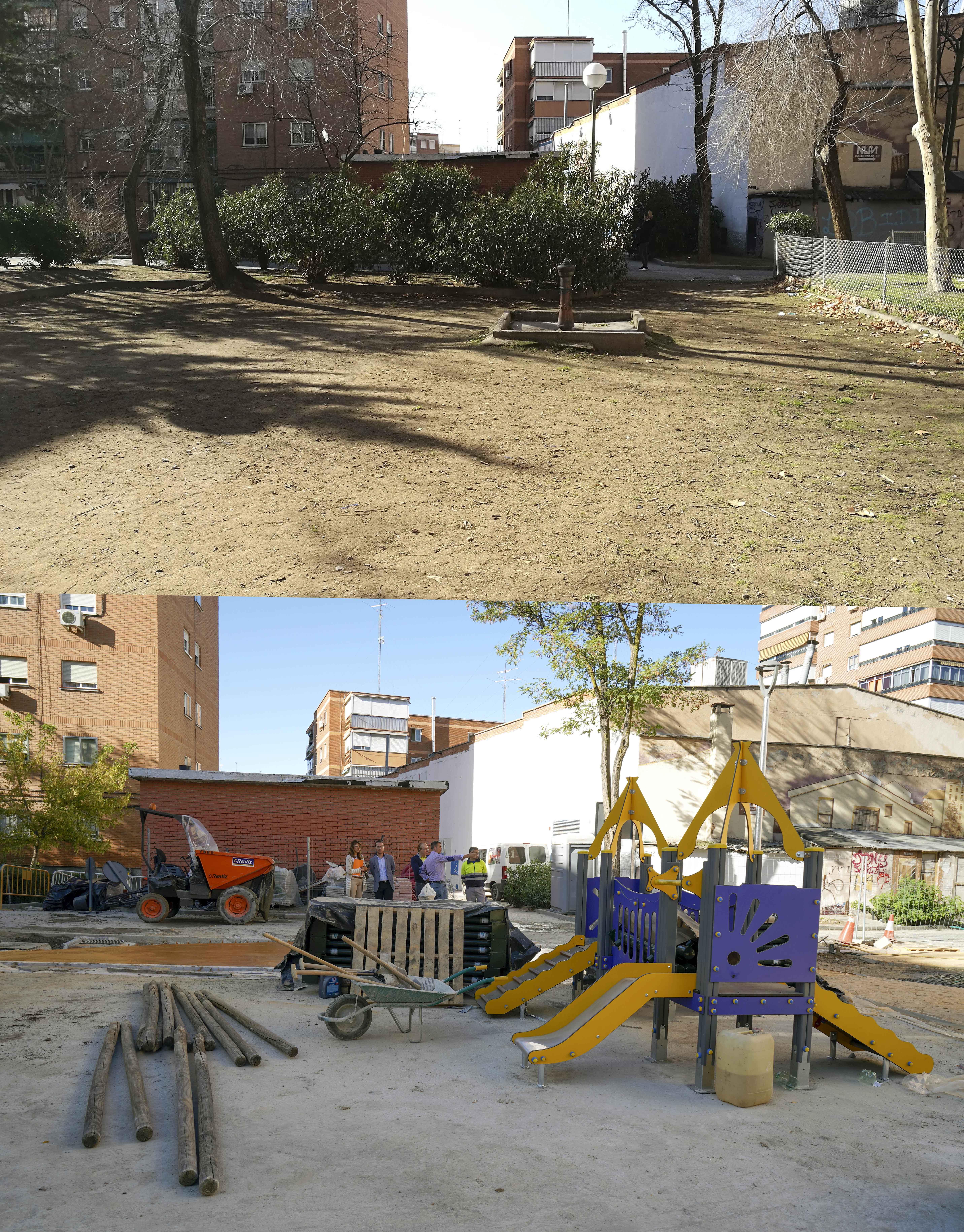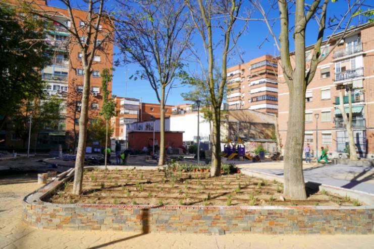 La plaza de la colonia Cerro Prieto de Móstoles se transforma en un entorno más moderno y acogedor