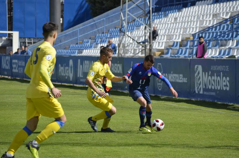 Quiso cambiarle la cara al encuentro el cuadro visitante tras la reanudación. Dio un par de pasos al frente y salió con otras intenciones, teniendo más balón y buscando el área rival con mayor determinación. Pero no le dejó el Móstoles, que volvió a golpear con puntualidad transcurridos un puñado de minutos del segundo acto. Recuperó Fran Montavez en zona central, Álex Alonso se desplegó como un relámpago por la banda, y Theo se marchó al área con el fusil cargado. La jugada fue de manual, con tres pases, el último de ellos un fantástico envío raso de Álex al punto de penalti, y una finalización soberbia del ‘pichichi’ del equipo. Facturó Theo Iosifidis el 2-0 con un violentísimo zurdazo que se estrelló en el larguero y terminó descansando en el fondo de las mallas. Octavo gol del curso para el ariete chipriota, que bien pudo haber hecho alguno más. Y es que tras ese segundo tanto, los azulones jugaron casi a placer. Con un fútbol muy vertical y lleno de sentido, el cuadro mostoleño se plantó ante la portería más de una vez con mucho peligro. Las tuvo para sentenciar de prácticamente todos los colores, pero la persiana se bajó y el partido se acabó complicando.