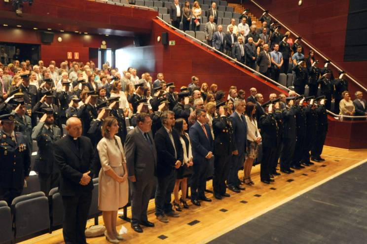 Tras la celebración de la tradicional misa, los asistentes acudieron a la entrega anual de distinciones y condecoraciones, en el Teatro de El Bosque. Durante el acto institucional recibieron la Cruz al Mérito Policial con distintivo blanco cinco policías, por sus trabajos, acciones o hechos realizados durante la prestación de sus servicios.