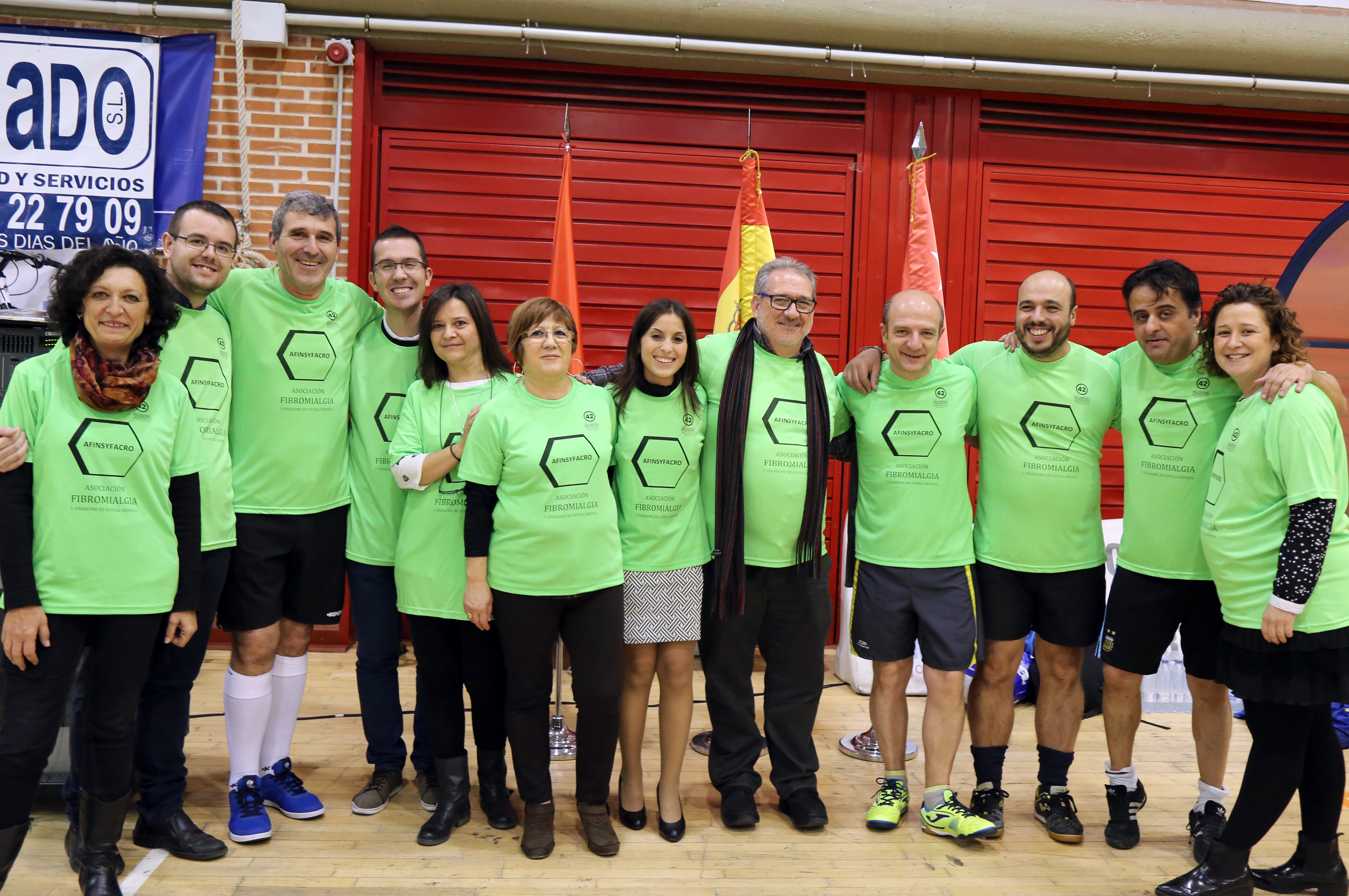 Jessica Antolín, primera Teniente de Alcalde, realizó ayer en el Polideportivo de Villafontana el saque de honor con el que arrancó el triangular benéfico de fútbol sala "Goles por la fibromialgia", organizado por AFINSYFACRO. La jornada contó con la participación del F.S. Móstoles masculino, el F.S. Móstoles femenino y un equipo de deportistas y políticos de la localidad, entre los que se encontraban diversos representantes de la corporación municipal.