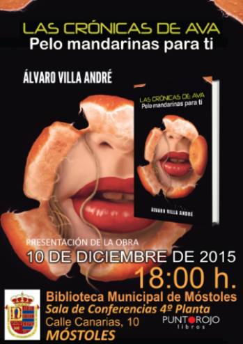 Imagen en alta resolución. Este enlace se abrirá mediante lightbox, puede haber un cambio de contextoLa concejalía de Cultura, Festejos y Deportes, presentará al próximo día 10 de diciembre a las 18.00 horas en la sala de conferencias de la Biblioteca Municipal Central de Móstoles, el segundo libro del escritor Álvaro Villa André, "Pelo mandarinas para ti".