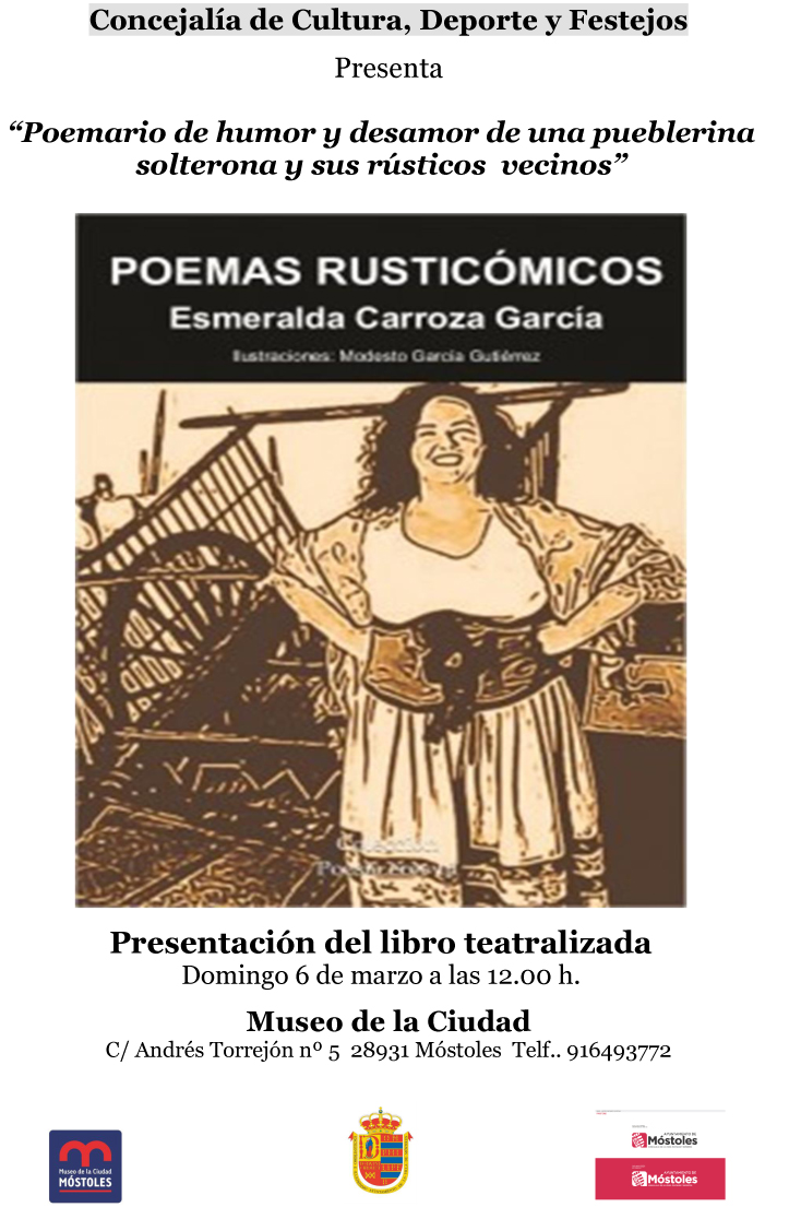 Imagen en alta resolución. Este enlace se abrirá mediante lightbox, puede haber un cambio de contextoLa concejalía de Cultura, Deportes y Festejos, presenta el domingo 6 de marzo a las 12h, en el Museo de la Ciudad, el libro "Poemas rusticómicos" que será teatralizado por su autora, Esmeralda Carroza.