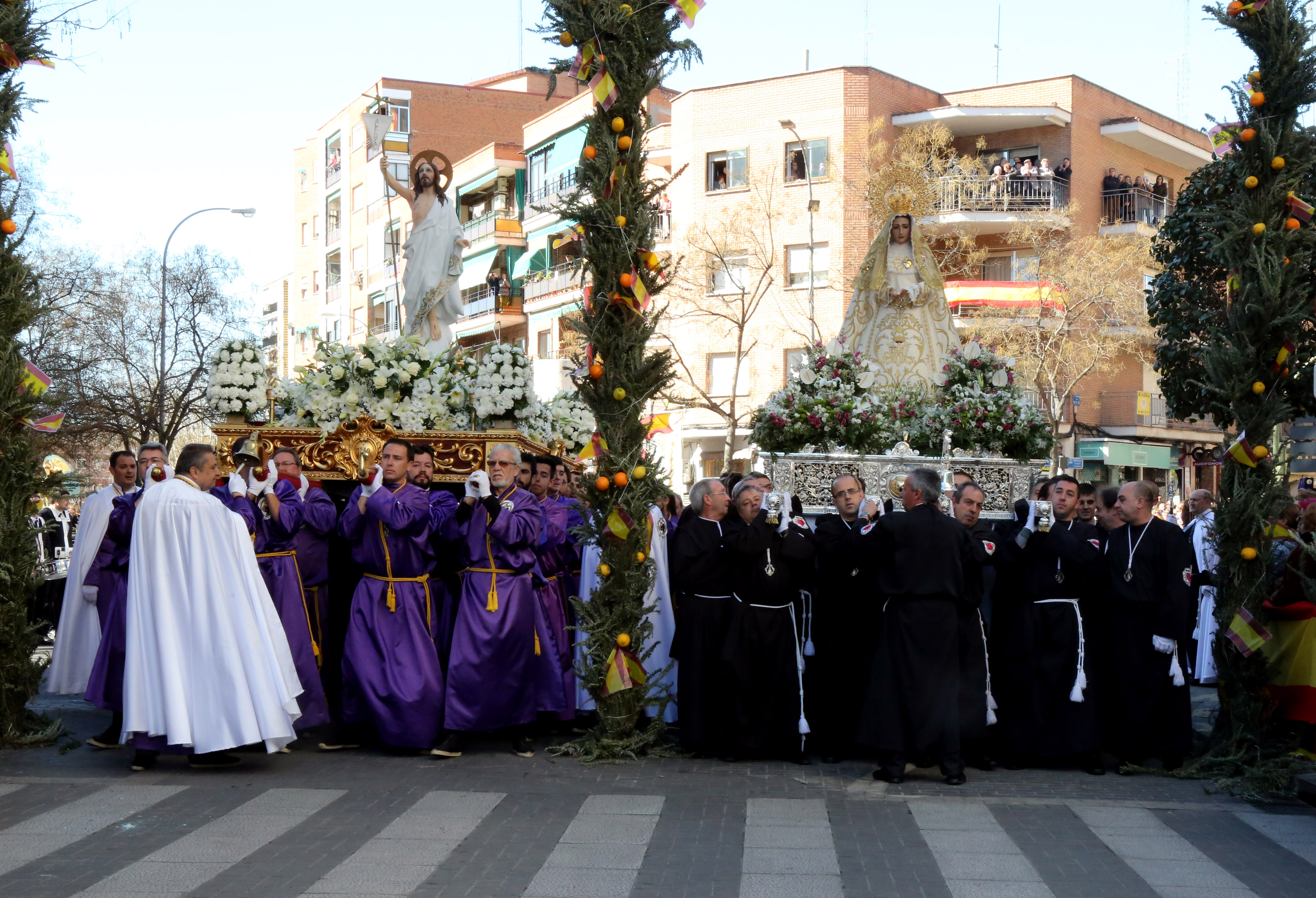 Imagen en alta resolución. Este enlace se abrirá mediante lightbox, puede haber un cambio de contextoLa primera teniente de Alcalde, Jéssica Antolín, y la concejala de Medio Ambiente, Servicios Generales y Festejos, Noelia Posse, acudieron este domingo a la Procesión del Encuentro, la más antigua de las procesiones de la ciudad, con la que se cierra la Semana Santa de Móstoles.